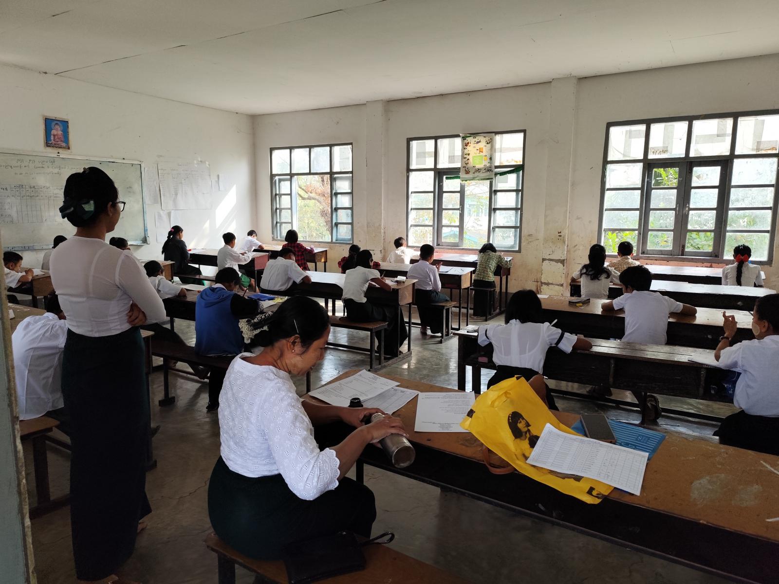ရခိုင်ပြည်နယ်၊ တောင်ကုတ်မြို့နယ်တွင် အခြေခံပညာကျောင်းများတွင် ၂၀၂၃-၂၀၂၄ ပညာသင်နှစ်၊ Grade-5 နှင့် Grade-9 အတန်းများ၏ နှစ်ဆုံးစာမေးပွဲများကို ကျင်းပလျက်ရှိရာ အင်္ဂလိပ်စာဘာသာရပ် ဖြေဆိုနေမှုများကို ခရိုင်စီမံအုပ်ချုပ်ရေးအဖွဲ့ဥက္ကဋ္ဌနှင့်အဖွဲ့ လှည့်လည်ကြည့်ရှု အားပေးခဲ့ကြသည်။