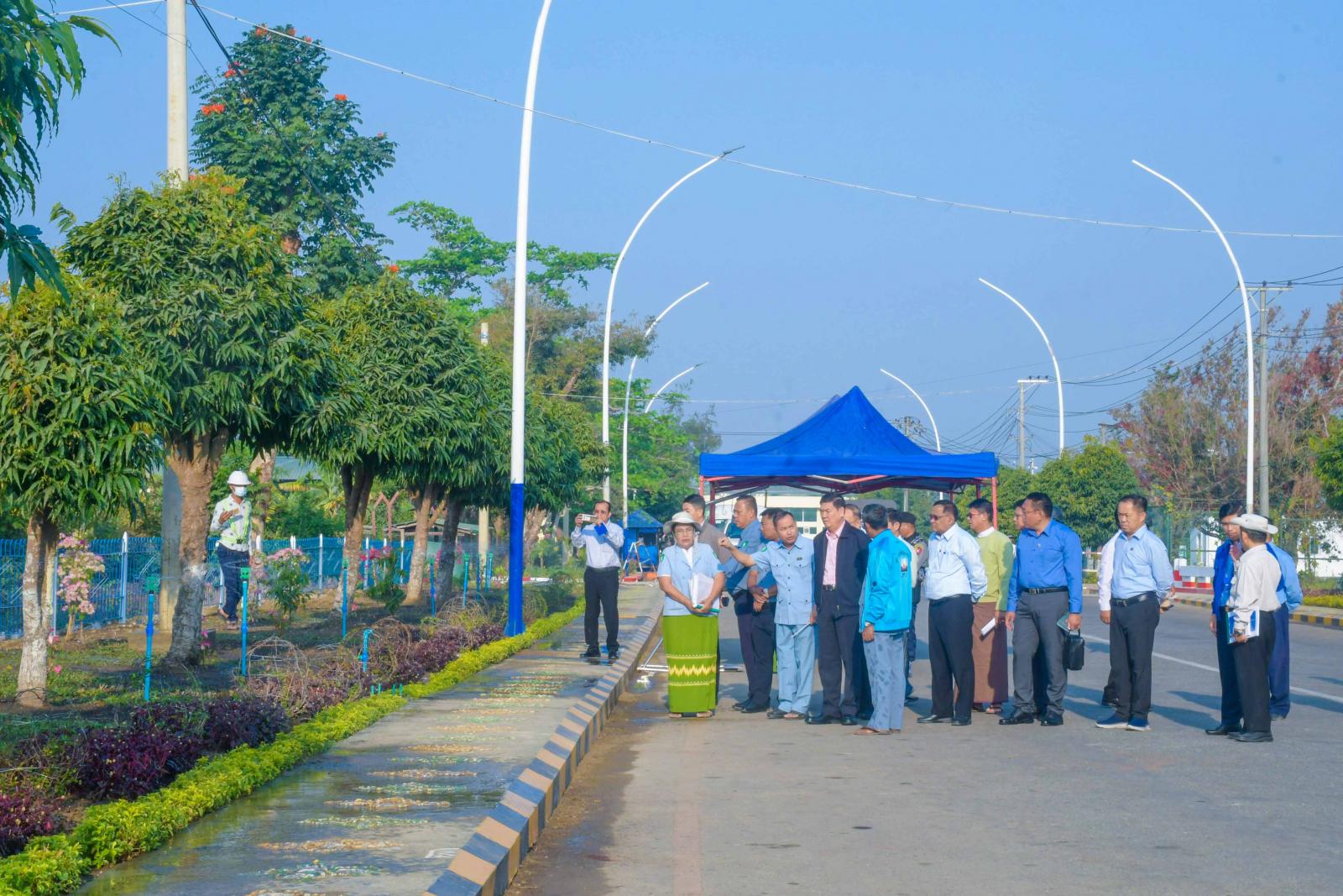 ထို့နောက် ပြည်နယ်ဝန်ကြီးချုပ်နှင့်အဖွဲ့သည် အဝေးပြေးကားကွင်းသို့သွားရောက်ပြီး ကားကွင်း ခြံစည်းရုံးကာရံ ခြင်းလုပ်ငန်း ဆောင်ရွက်ပြီးစီးမှုနှင့် အသိပညာပေးဆိုင်းဘုတ်များ စိုက်ထူထားရှိမှုတို့ကို သွားရောက်ကြည့်ရှု စစ်ဆေးကြရာ အများပြည်သူသုံးလေဆိပ်၊ သင်္ဘော ဆိပ်၊ ကားဂိတ်များစနစ်တကျ ရှိစေရေးလုပ်ငန်းကော်မတီမှ တာဝန်ရှိသူများက ရှင်းလင်းတင်ပြကြသည်။ ယင်းနောက် ပြည်နယ်ဝန်ကြီးချုပ်နှင့်အဖွဲ့သည် လောကာနန္ဒာ လမ်းဆုံတွင် မြေယာရှုခင်းများ ဆောင်ရွက်ထားရှိမှုနှင့် ဆောင်ရွက်နေမှုများ၊ မေယု Complex ရှေ့တွင် လမ်းလယ်သံဇကာ၊ လမ်းလယ်ကျွန်း၊ လျှပ်စစ်မီးတိုင်များ စိုက်ထူထားရှိမှုနှင့် ပလက်ဖောင်း ပြုပြင်ခြင်းလုပ်ငန်း ဆောင်ရွက်ထားရှိမှုအခြေအနေတို့ကို သွားရောက်ကြည့်ရှုစစ်ဆေးကြရာ ပြည်နယ်ဝန်ကြီးချုပ်က လိုအပ်သည်များကို လမ်းညွှန်မှာကြားခဲ့ကြောင်း သိရသည်။
