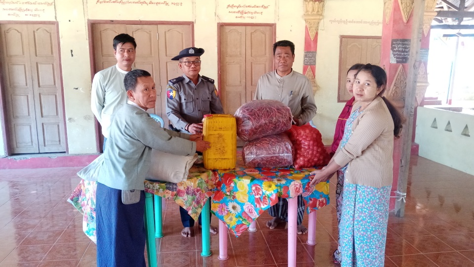 ထိုသို့ ထောက်ပံ့ပေးအပ်ခြင်းကို ခရိုင်စီမံအုပ်ချုပ်ရေးအဖွဲ့ဥက္ကဋ္ဌနှင့်အဖွဲ့ဝင်များကိုယ်စား မြို့နယ်စီမံအုပ်ချုပ်ရေးအဖွဲ့ဥက္ကဋ္ဌ ဦးစိုးမင်းထက်နှင့်အဖွဲ့ဝင်များ၊ဌာနဆိုင်ရာတာဝန်ရှိသူများက မြေပုံမြို့နယ်အတွင်းမှ ဓာတ်ပေါင်းစုစေတီတော်စွယ်တော်ဓမ္မာရုံ၌ တည်းခိုနေထိုင်သူ(၅၂)ဦးအတွက် ဆန်(၂)အိတ်၊ ဆီ(၁)ပုံး၊ ကြက်သွန် (၁)အိတ်၊ ငရုတ်သီးခြောက်(၃)ပိဿာအားလည်းကောင်း၊ ကမ်းထောင်းကြီးမြို့မှ မြောက်ပိုင်းရပ်ကွက် ပြည်ကျောင်းတိုက်၌ တည်းခိုနေထိုင်သူ (၂၀၉)ဦးအတွက် ဆန်(၄)အိတ်၊ ဆီ(၂) ပုံး၊ ကြက်သွန် (၂)အိတ် ငရုတ်သီးခြောက် (၇)ပိဿာအားလည်ကောင်း၊ ဗန်းတောင်ကျောင်းတိုက်၌ တည်းခိုနေထိုင်သူ (၆၇)ဦးအတွက် ဆန်(၂)အိတ်၊ ဆီ(၁)ပုံး၊ ကြက်သွန်(၁)အိတ်၊ ငရုတ်သီးခြောက် (၄)ပိဿာအားလည်ကောင်း၊ အမ်းမြို့နယ်အတွင်းမှ လာရောက်၍ မဟာဆူးကျောင်းတိုက်၌ တည်းခိုနေထိုင်သူ (၃၅)ဦးအတွက် ဆန်(၁)အိတ်၊ ဆီ(၁)ပုံး၊ ကြက်သွန် (၅)ပိဿာ၊ ငရုတ်သီးခြောက် (၃) ပိဿာအားလည်းကောင်း၊ အမှတ်(၄)ရွာသစ်မူလွန်ကျောင်း၌ တည်းခိုနေထိုင်သူ (၃၉)ဦးအတွက် ဆန်(၁)အိတ်၊ ဆီ(၁) ပုံး၊ ကြက်သွန် (၅)ပိဿာ၊ ငရုတ်သီးခြောက်(၃)ပိဿာအားလည်းကောင်း မြို့နယ်စီမံအုပ်ချုပ်ရေးအဖွဲ့ဥက္ကဋ္ဌ ဦးစိုးမင်းထက်နှင့်အဖွဲ့ဝင်များက ထောက်ပံ့ပေးအပ်ခဲ့ရာ အုပ်ထိန်းသူမိဘဆရာများက လက်ခံခဲ့ကြောင်း သိရသည်။