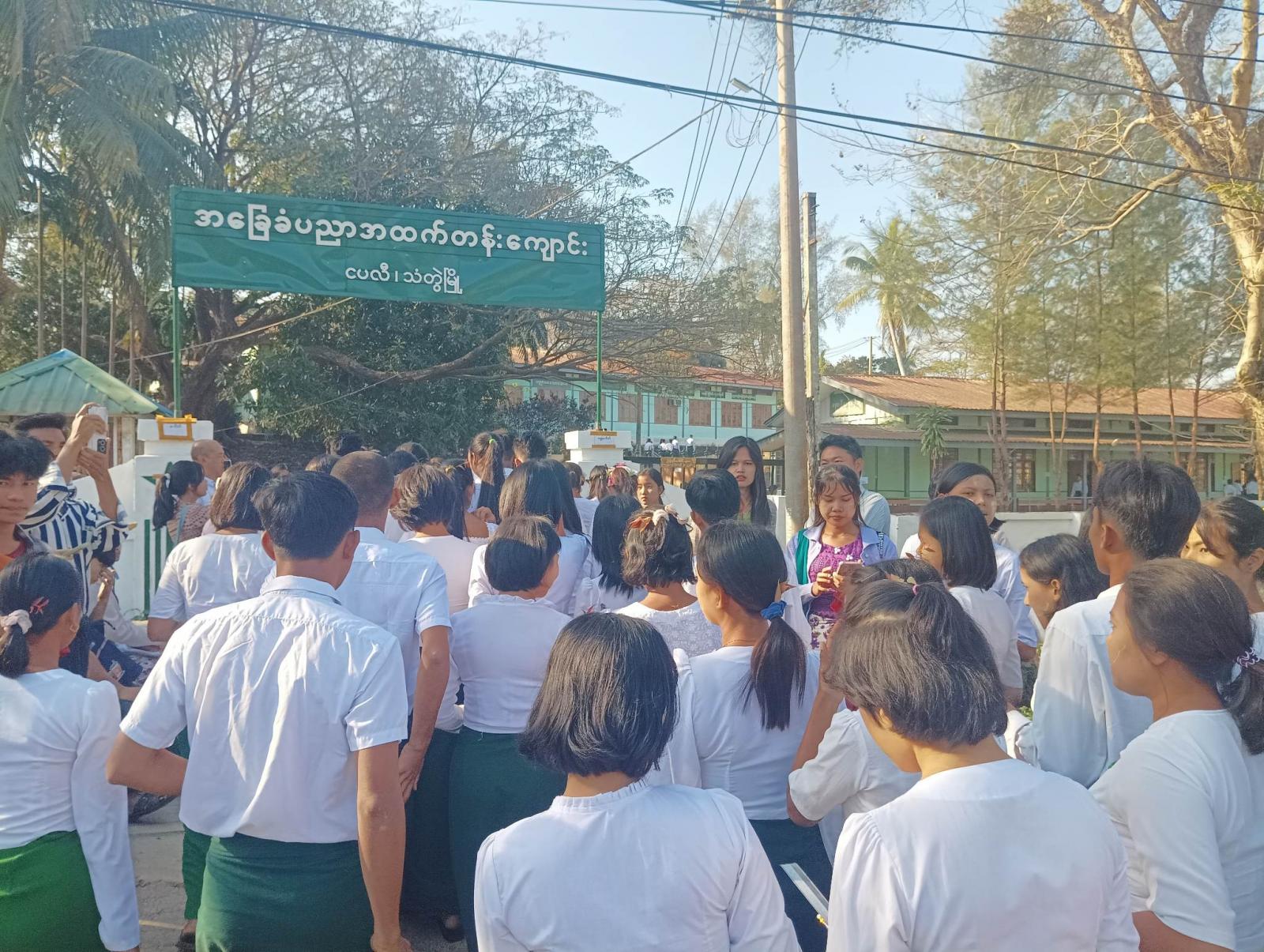 ထိုသို့ စာမေးပွဲ စစ်ဆေးခြင်းကို မတ်လ (၁၁) ရက်နေ့မှ (၁၉) ရက်နေ့ထိ တစ်နေ့လျှင် တစ်ဘာသာနှုန်းဖြင့် နံနက် ၉ နာရီမှ ၁၂ နာရီထိ ၃ နာရီ မေးခွန်းလွှာကို သက်ဆိုင်ရာ စာစစ်ဌာနများတွင် စစ်ဆေးလျက်ရှိရာ စာမေးပွဲကြီးကြပ်ရေးမှူးနှင့် တာဝန်ကျ ဆရာ၊ဆရာမများမှ စနစ်တကျ ကြီးကြပ်ဆောင်ရွက်လျက်ရှိပြီး မြို့နယ်စီမံအုပ်ချုပ်ရေးအဖွဲ့ဥက္ကဋ္ဌနှင့် အဖွဲ့ဝင်များ၊ ဌာနဆိုင်ရာများ၊ ရပ်ကွက်အုပ်ချုပ်ရေးမှူးများက ကျောင်းသား၊ကျောင်းသူများ အေးချမ်းပျော်ရွှင်စွာ ဖြေဆိုနိုင်ရေးအတွက် လိုအပ်သည်များကို ပံ့ပိုးကူညီဆောင်ရွက်လျက်ရှိသည်။