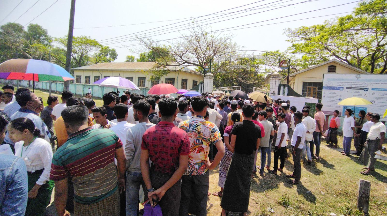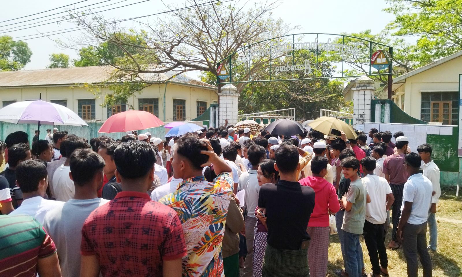 ရခိုင်ပြည်နယ်၊ မောင်တောခရိုင်၊ မောင်တောမြို့နယ်၌ ၂၀၂၃-၂၀၂၄ ပညာသင်နှစ်၊ တက္ကသိုလ်ဝင် စာမေးပွဲအား စာစစ်ဌာန ၂ ခု ဖွင့်လှစ်၍ ယမန်နေ့နံနက် ၉ နာရီအချိန်တွင် သက်ဆိုင်ရာစာစစ်ဌာနများတွင် အင်္ဂလိပ်စာဘာသာရပ်အား ကျောင်းသား၊ ကျောင်းသူများတည်ငြိမ်အေးချမ်းစွာဖြင့် ဝင်ရောက်ဖြေဆိုခဲ့ကြသည်။