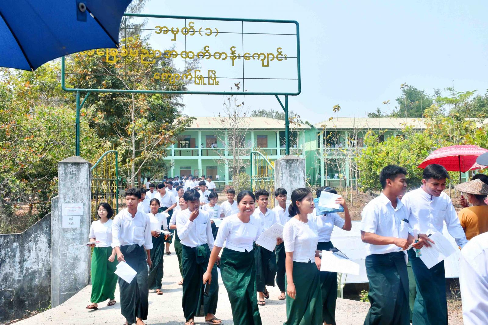ယင်းသို့ ကျောင်းသား၊ ကျောင်းသူများ စိတ်အေးချမ်းသာစွာ ဖြေဆိုနိုင်ရေးအတွက် ကျောင်းဝင်း အတွင်းနှင့် အပြင်များတွင် သက်ဆိုင်ရာ လုံခြုံရေးအဖွဲ့ဝင်များ၊ ကျန်းမာရေးဝန်ထမ်းများ၊ မီးသတ်တပ်ဖွဲ့ဝင်များနှင့် ရပ်ကွက်ကျေးရွာအုပ်ချုပ်ရေးအဖွဲ့ဝင်များက စနစ်တကျစောင့် ကြပ်ကြည့်ရှုပေးလျက်ရှိကာ တာဝန်ရှိသူများက သွားရောက်ကြည့်ရှုအားပေးခဲ့ကြကြောင်း သိရသည်။
