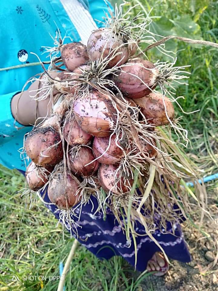 ယခုအခါ စိုက်ပျိုးပြီး ရက်(၉၀)အကြာတွင် ကြက်သွန်နီအထွက်နှုန်း ခန့်မှန်းနိုင်ရန်အတွက် တစ်ဧက၏ ၁၀၀၀ ပုံ ၁ ပုံ (၆.၆) ပေပတ်လည်ကွက်ကို ရိတ်သိမ်းရာ ၃.၁၆ ပိဿာထွက်ရှိပြီး တစ်ဧက အထွက်နှုန်း ပျမ်းမျှ ၃၁၆၀ ပိဿာထွက်ရှိကြောင်းသိရသည်။