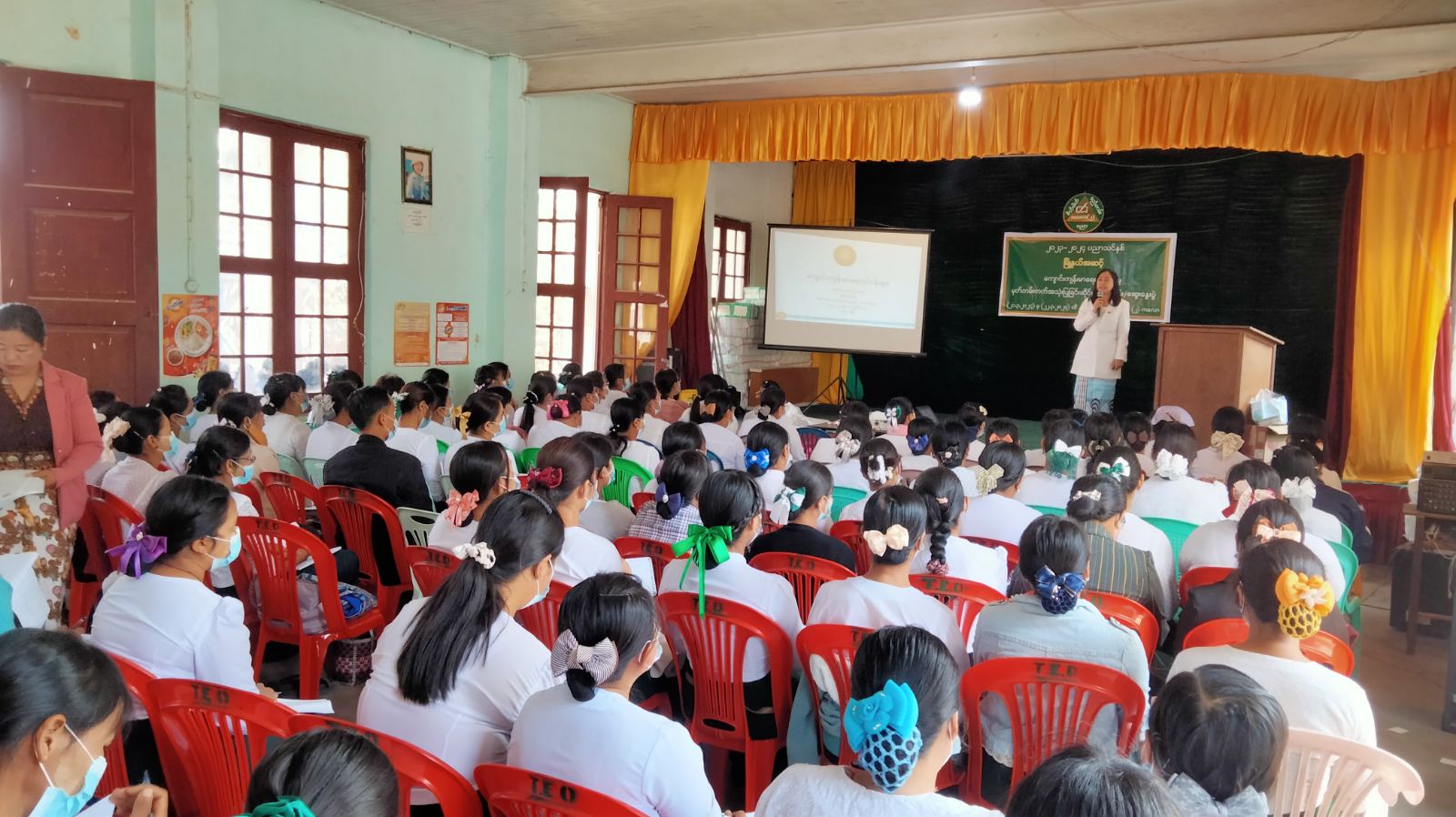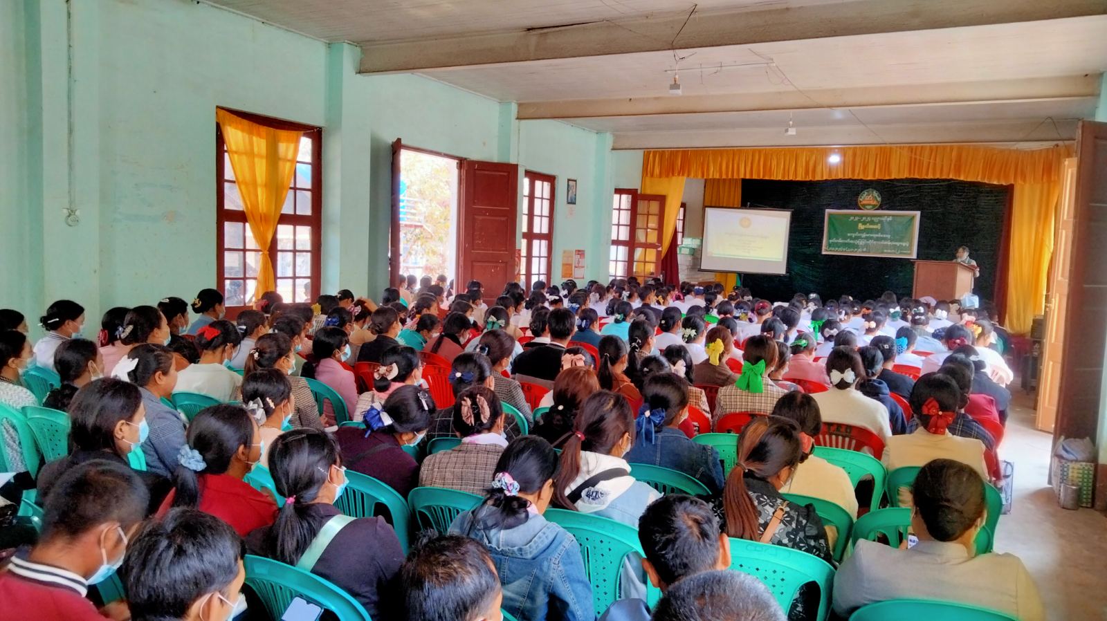 ကလောမြို့နယ်အတွင်းရှိ အခြေခံပညာကျောင်းများရှိ ကျောင်းသားလူငယ်များ၏ ကျန်းမာရေး အဆင့်အတန်းကိုမြှင့်တင်ရန်၊ ကျောင်းသားလူငယ်များ ကျန်းမာရေးနှင့်ညီညွှတ်သည့် လူနေမှုဘဝပုံစံများ သိရှိကျင့်သုံးစွဲမြဲစေရန်နှင့် ကျောင်းကျန်းမာရေးလုပ်ငန်းမှတဆင့် တစ်မျိုးသားလုံး ကျန်းမာရေးအဆင့် မြင့်မားတိုးတက်လာစေရန်ရည်ရွယ်၍ ရှမ်းပြည်နယ်တောင်ပိုင်း၊ ကလောမြို့နယ်တွင် ၂၀၂၃-၂၀၂၄ ပညာသင်နှစ် မြို့နယ်အဆင့် ကျောင်းကျန်းမာရေးစစ်ဆေးမှုမှတ်တမ်းကတ်အသုံးပြုခြင်းဆိုင်ရာ သင်တန်း/ဆွေးနွေးပွဲကို ယနေ့နံနက် ၉ နာရီက အမှတ် (၂) အခြေခံပညာအထက်တန်းကျောင်း သခင်ကိုယ်တော်မှိုင်းခန်းမ၌ ပြုလုပ်ခဲ့သည်။