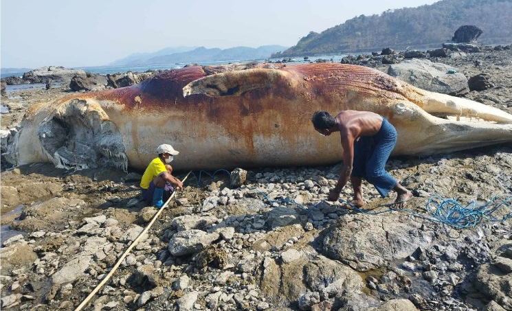 ရခိုင်ပြည်နယ်၊ ဂွမြို့နယ်တွင် မတ်လ (၃၀) ရက်နေ့၌ လောင်းကျိုးကျေးရွာ၏ အနောက်မြောက် ဘက် (၁.၅) မိုင်ခန့်အကွာ၊ ကမ်းသာယာရေမျက်တောင်၏တောင်ဘက် (၁) မိုင်ခန့်အကွာ မဒေါ့ကျောက်တောင်အနီး ကျောက်ပြင်ပေါ်တွင် အလျားပေ ၅၀၊ လုံးပတ်ပေ ၃၀ ခန့်ရှိ ဝေလ ငါးသေတစ်ကောင် သောင်တင်လျက်ရှိကြောင်း၊ မြို့နယ်ငါးလုပ်ငန်းဦးစီးဌာနမှ တွေ့ရှိမှုအခြေအနေများအား မှတ်တမ်းတင်ဆောင်ရွက်ခဲ့ပြီး ယမန်နေ့က ထပ်မံကွင်းဆင်း၍ ဝေလငါးအသေအား နေရာရွှေ့ခြင်းများမဖြစ်ပေါ်စေရေး လိုအပ်သည်များကို ပြင်ဆင်ဆောင်ရွက်ခဲ့ကြကြောင်း သိရသည်။