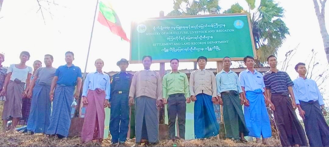 ဆက်လက်၍ မြို့အုပ်ချူပ်ရေးမှူး ဦးဉာဏ်လင်းနှင့်ဌာနဆိုင်ရာများက ယခင်လယ်ယာမြေ စီမံခန့်ခွဲရေးနှင့် စာရင်းအင်းဦးစီးဌာနဆိုင်းဘုတ်မှ ကြေးတိုင်နှင့်မြေစာရင်းဦးစီးဌာနအမည်ရှိ ဆိုင်းဘုတ်အသစ်အား ပြောင်းလဲတပ်ဆင်ပြီး အမွေးနံ့သာရည်များ ပက်ဖျန်းကာ ဆိုင်းဘုတ်အသစ် ဖွင့်လှစ်ပေးခဲ့ကြောင်း သိရသည်။