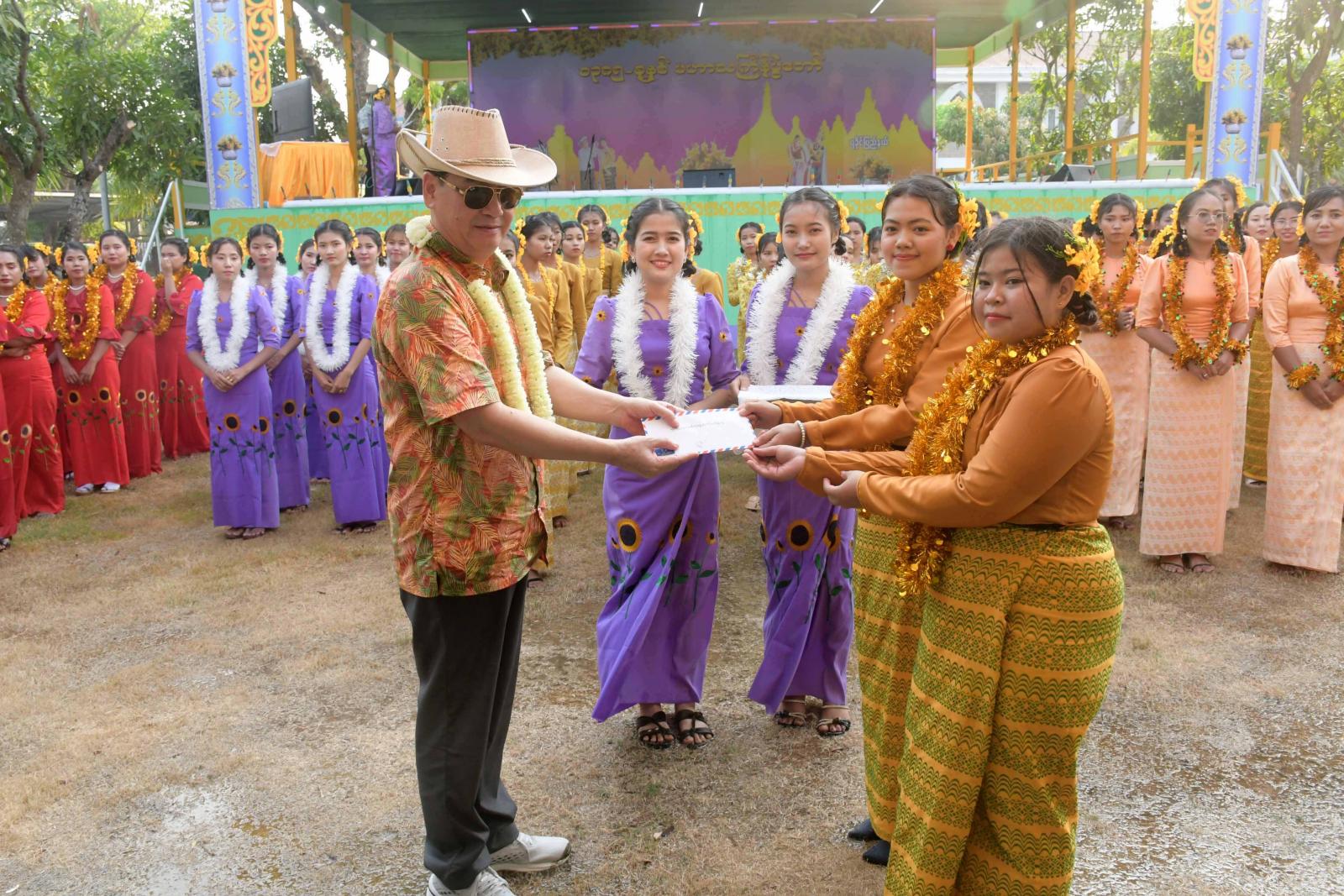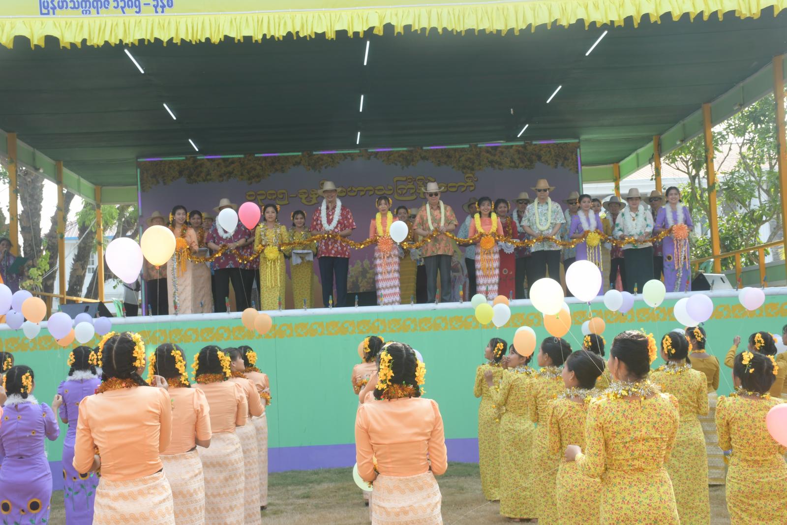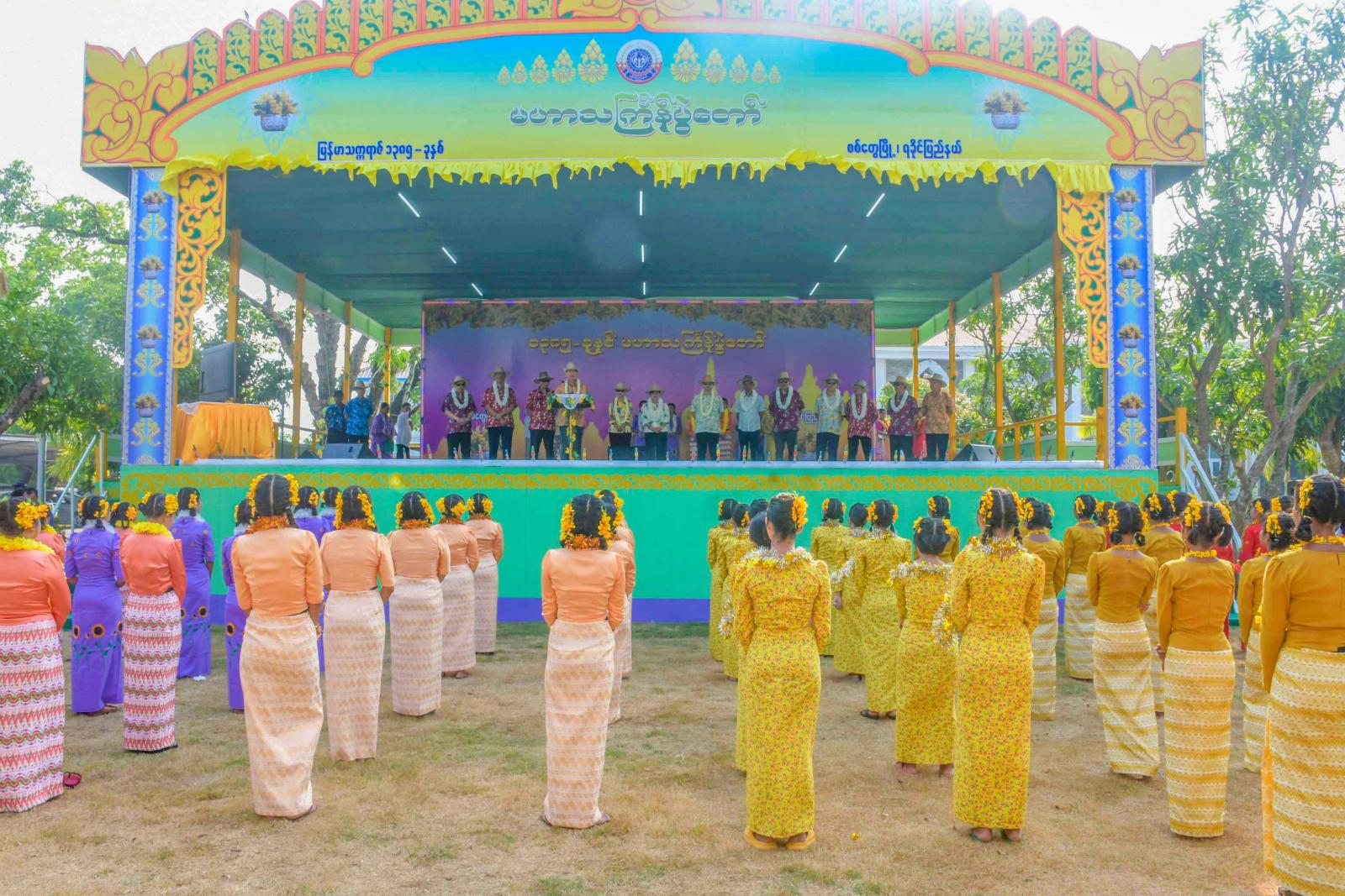 ဦးစွာ ရခိုင်ပြည်နယ်ဝန်ကြီးချုပ် ဦးထိန်လင်း၊ အနောက်ပိုင်းတိုင်း စစ်ဌာနချုပ်တိုင်းမှူးနှင့် တာဝန်ရှိသူများက မဟာသင်္ကြန်ပွဲတော် ဗဟိုမဏ္ဍပ်အား ဖဲကြိုးဖြတ်ဖွင့်လှစ်ပေးကြသည်။