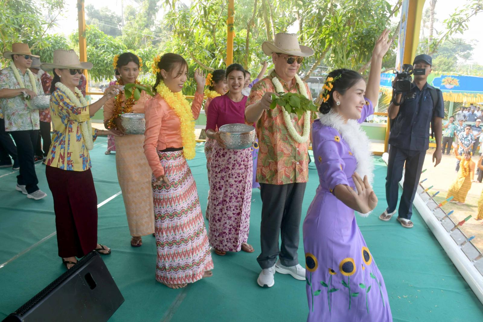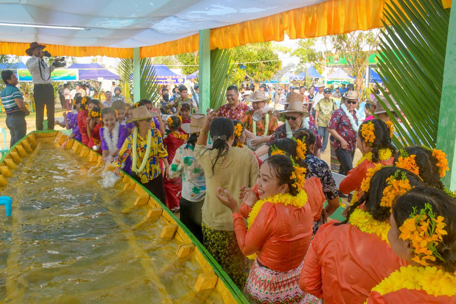 ယိမ်းအကအဖွဲ့များက နှစ်သစ်ကူးဆုတောင်း၊ မန်းတောင်ရိပ်ခို တေးသီချင်းများဖြင့် သီဆိုကပြဖျော်ဖြေကြရာ ပြည်နယ်ဝန်ကြီးချုပ်နှင့်ဇနီး တာဝန်ရှိသူများက ယိမ်းအကအဖွဲ့များနှင့် မဏ္ဍပ်ဖွဲ့သို့ တက်ရောက်လာကြသူများအား အတာရေများဖြင့် ပက်ဖျန်းပေးကြသည်။