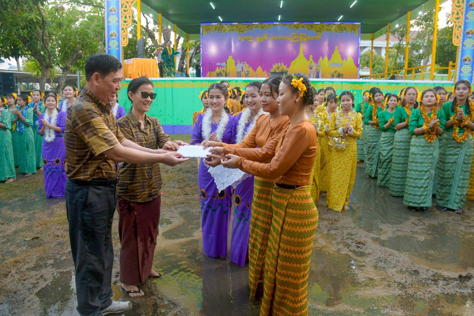 ထို့နောက် ပြည်နယ်ဝန်ကြီးချုပ်နှင့်ဇနီး၊ ပြည်နယ်တရားလွှတ်တော်တရားသူကြီးချုပ်၊ ပြည်နယ်အစိုးရဖွဲ့ဝင်များနှင့် ဇနီးများက ယိမ်းအကအဖွဲ့များအား ဂုဏ်ပြုဆုငွေများပေးအပ်ကြသည်။ ပြည်နယ်ဝန်ကြီးချုပ်နှင့် ဇနီး တာဝန်ရှိသူများသည် ဗဟိုမဏ္ဍပ်အနီးရှိ ရခိုင်ရိုးရာရေလောင်းမဏ္ဍပ်တွင် ပျော်ပျော်ပါးပါးရေကစားကြပြီး ပြည်နယ်ဝန်ကြီးများ ကိုယ်စားပြု စတုဒိသာမဏ္ဍပ်များသို့ လှည့်လည်ကြည့်ရှုကာ အတာရေများပက်ဖျန်း ပေးကြသည်။