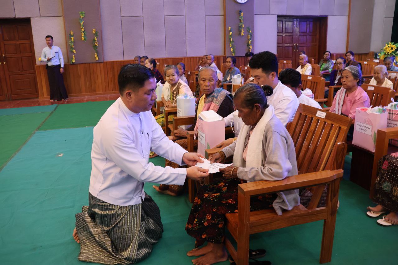 ထို့နောက် ပြည်နယ်ဝန်ကြီးချုပ်က အသက်အကြီးဆုံး အဘိုး ဦးအောင်ဗလ (၉၀)နှစ်နှင့် အသက်အကြီးဆုံးအဘွား ဒေါ်တင်ညွှန့် (၉၂)နှစ်တို့အား တစ်ဦးလျှင် ငွေကျပ်တစ်သိန်းစီနှင့် လှူဒါန်းပစ္စည်းများ၊ ကျန်းမာရေးအထောက်အကူပြုဆေးဝါးများအား ပေးအပ်လှူဒါန်းခဲ့သည်။