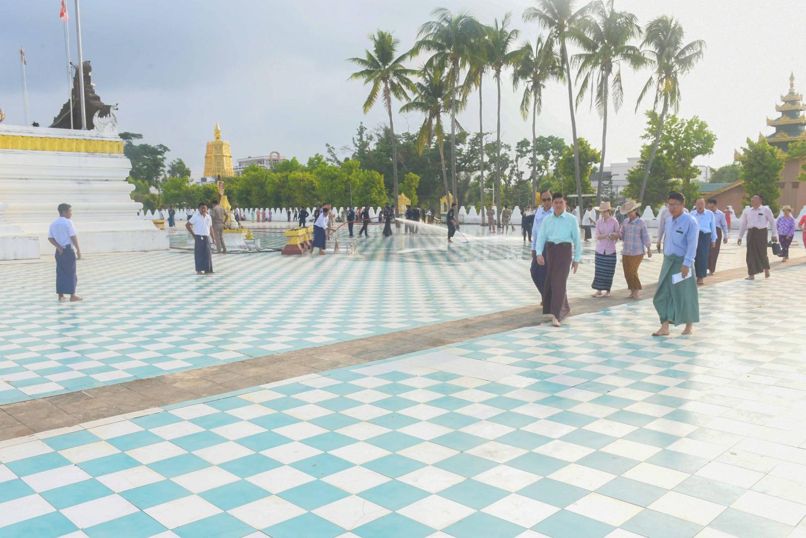 ထို့နောက် ပြည်နယ်ဝန်ကြီးချုပ်နှင့် အဖွဲ့သည် လောကာနန္ဒာစေတီတော်မြတ်ကြီး ရင်ပြင်တော်နှင့် စေတီတော်ပုရဝုဏ်အတွင်း၌ ရဲတပ်ဖွဲ့ဝင်များ၊ မီးသတ်တပ်ဖွဲ့ဝင်များနှင့် ဌာနဆိုင်ရာများ စုပေါင်းသန့်ရှင်းရေးဆောင်ရွက်နေမှုအား လှည့်လည်ကြည့်ရှုပြီး လိုအပ်သည်များကို တာဝန်ရှိသူများနှင့် ပေါင်းစပ်ညှိနှိုင်းပေးခဲ့သည်။