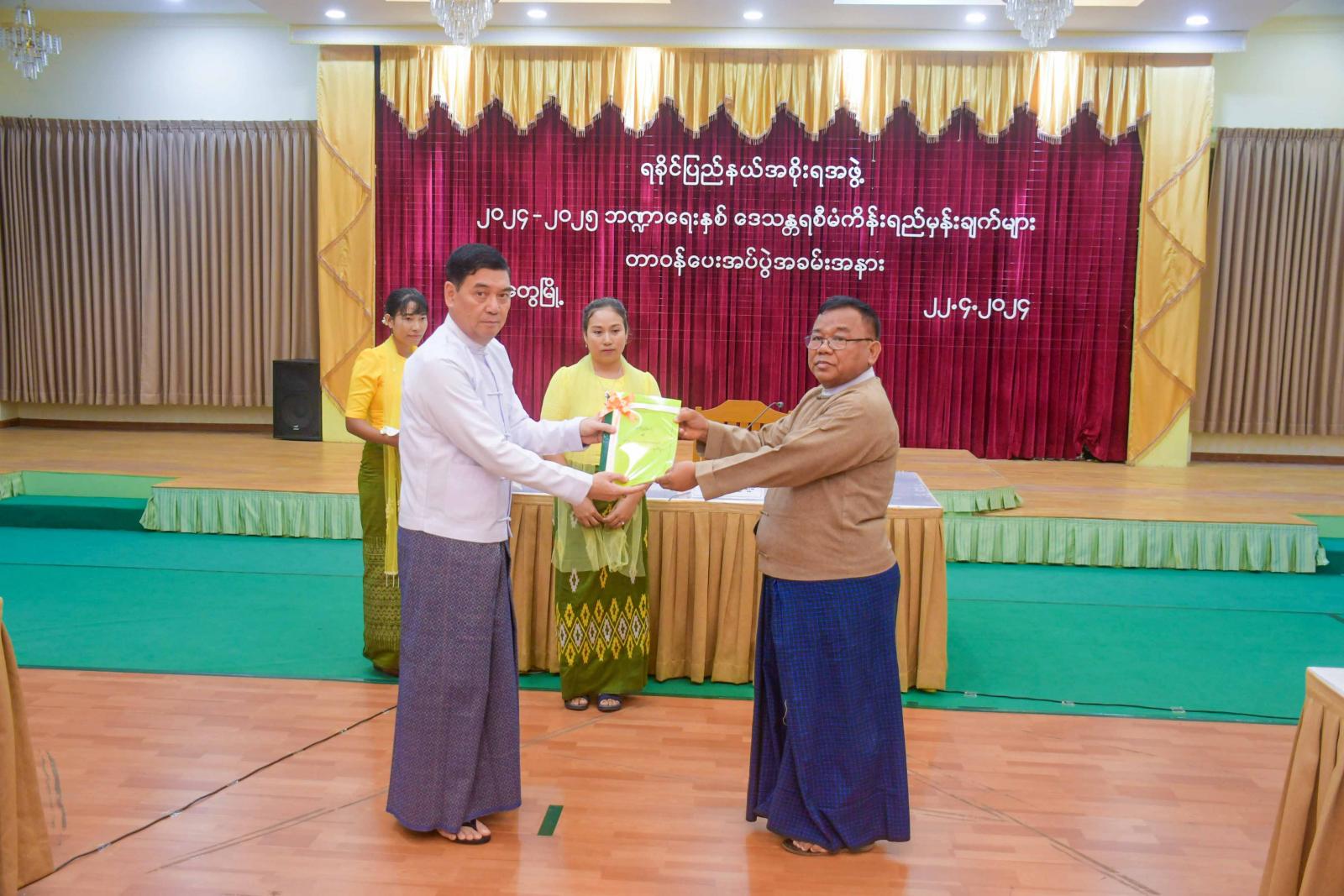 ထို့နောက် ပြည်နယ်ဝန်ကြီးချုပ် ဦးထိန်လင်းက လယ်ယာကဏ္ဍကြီး၊ စက်မှုကဏ္ဍကြီးနှင့် ဝန်ဆောင်မှုကဏ္ဍကြီး များအတွက် ပြည်နယ်စိုက်ပျိုးရေးဦစီးဌာန၊ ပြည်နယ်အသေးစားစက်မှုလက်မှု လုပ်ငန်းဦးစီးဌာနနှင့် ပြည်နယ် ပညာရေးမှူးရုံးတို့အား စီမံကိန်းရည်မှန်းချက်တာဝန်များကို ပေးအပ်ခဲ့သည်။