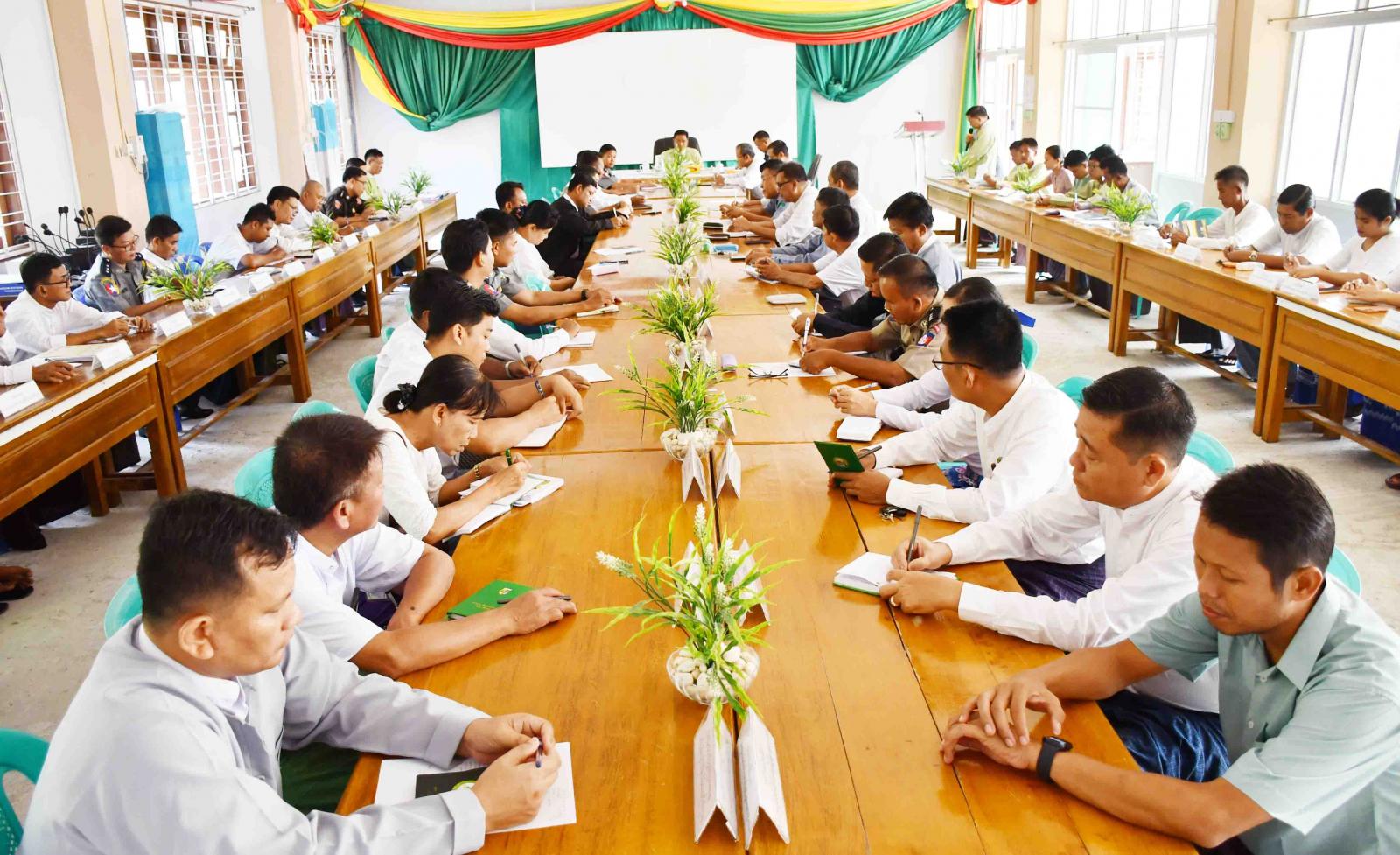 ယင်းနောက် ခရိုင်စီမံအုပ်ချုပ်ရေးအဖွဲ့ အစည်းအဝေး အမှတ်စဉ် (၅/၂၀၂၄) ဆုံးဖြတ်ချက်များအပေါ် ဆောင်ရွက်ပြီးစီးမှုအခြေအနေများ၊ အစည်းအဝေး အမှတ်စဉ် (၆/၂၀၂၄)တွင် ဆွေးနွေးဆုံးဖြတ်မည့် အကြောင်းအရာများနှင့်ပတ်သက်၍ ဆွေးနွေးပြောကြားရာ ဌာနဆိုင်ရာများမှ မိမိတို့ဌာန၏ ဆောင်ရွက်ထားရှိမှုအခြေအနေများကို တင်ပြကြပြီး ခရိုင်စီမံအုပ်ချုပ်ရေးအဖွဲ့ဥက္ကဋ္ဌက လိုအပ်သည်များကို ပေါင်းစပ်ညှိနှိုင်းဆောင်ရွက်ပေးကာ နိဂုံးချုပ်အမှာစကားပြောကြားခဲ့ကြောင်း သိရသည်။