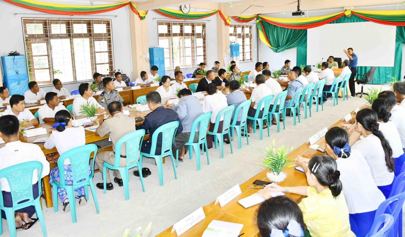 ရခိုင်ပြည်နယ်၊ ကျောက်ဖြူခရိုင် အထွေထွေအုပ်ချုပ်ရေးဦးစီးဌာန၌ ခရိုင်စီမံအုပ်ချုပ်ရေးအဖွဲ့နှင့် ဌာနဆိုင်ရာများ၏ အပတ်စဉ်ပုံမှန်လုပ်ငန်းညှိနှိုင်းအစည်းအဝေးကို ယမန်နေ့နံနက် ၁၀ နာရီက အဆိုပါ ဦးစီးဌာနရုံး အစည်းအဝေးခန်းမတွင် ကျင်းပပြုလုပ်ရာ ခရိုင်/မြို့နယ် စီမံအုပ်ချုပ်ရေးအဖွဲ့ဥက္ကဋ္ဌနှင့် အဖွဲ့ဝင်များ၊ ဌာနဆိုင်ရာများတက်ရောက်ကြသည်။