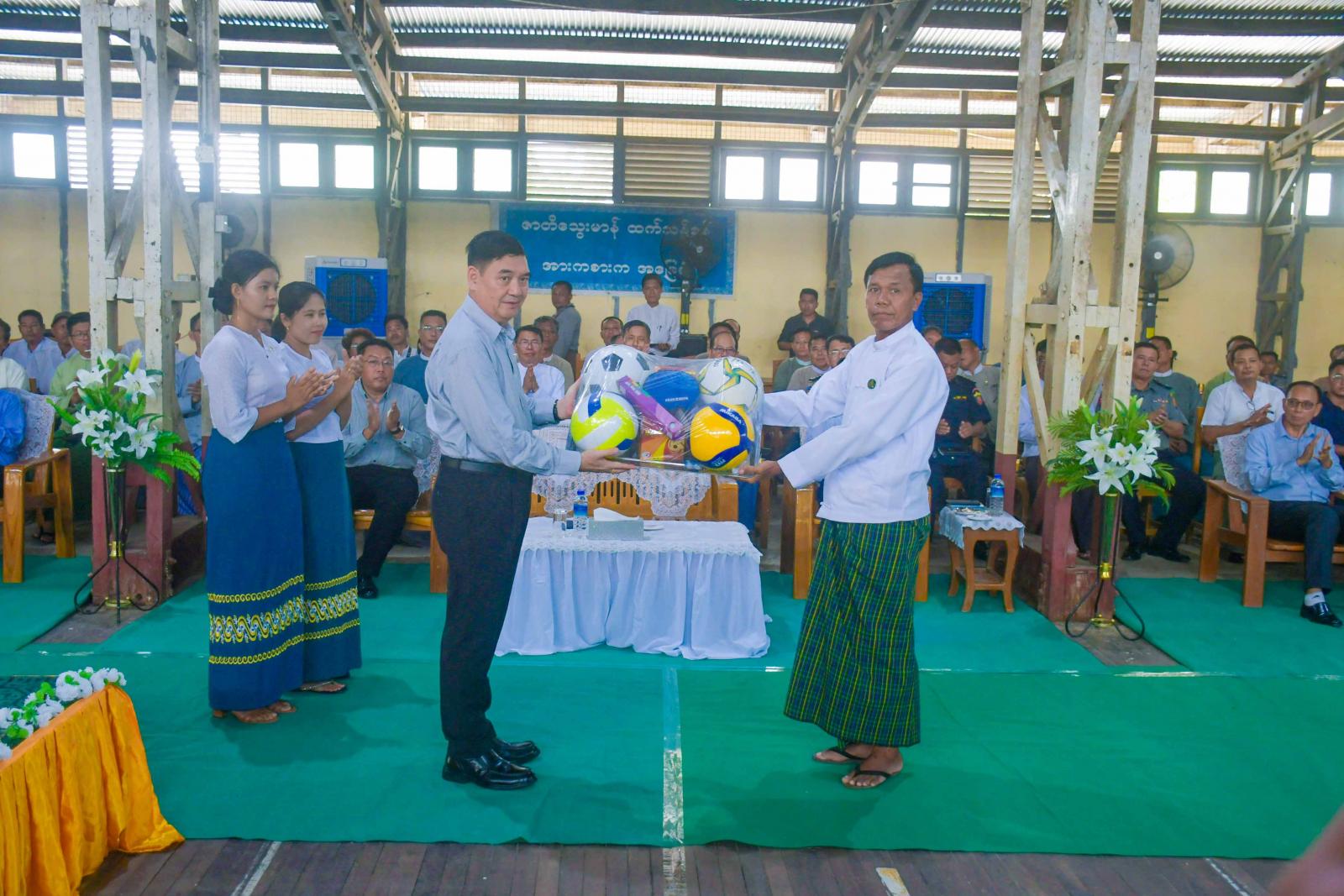 ဆက်လက်၍ ပြည်နယ်ဝန်ကြီးချုပ် ဦးထိန်လင်းက ပညာရေးဌာနသို့ အားကစားပစ္စည်းများပေးအပ်ရာ ပြည်နယ်ပညာရေးမှူးက လက်ခံရယူပြီး နွေရာသီအားကစားသင်တန်းသားများ ခန်းမအတွင်းမှ ပြန်လည်ထွက်ခွာကြသည်။