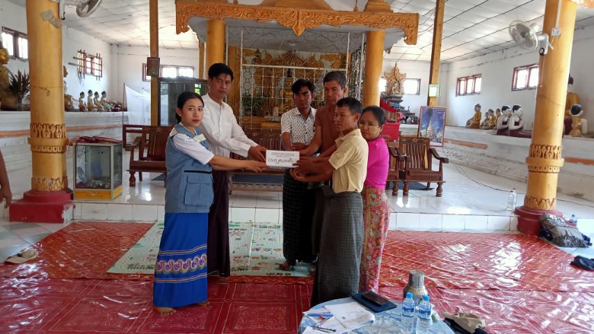 ဆက်လက်၍ ယာယီနေရပ်စွန့်ခွာလာသည့် အိမ်ထောင်စု(၅၆)စု၊ လူဦးရေ(၁၉၂) ဦးတို့၏ လတ်တလော စားဝတ်နေရေးအဆင်ပြေစေရေးအတွက် လူတစ်ဦးလျှင် (၉၀၀၀)နှုန်းဖြင့် ဆန်ရိက္ခာ(၁) လစာဖိုးငွေ(၁,၇၂၈,၀၀၀)အားမြို့နယ်စီမံအုပ်ချုပ်ရေးအဖွဲ့ဥက္ကဋ္ဌ ဦးစိုးမင်းထက်နှင့် မြို့နယ်ဘေးအန္တရာယ်စီမံခန်ခွဲရေးဦးစီးဌာနမှ ဦးစီးအရာရှိ ဒေါ်မေထားဇော်တို့က ယာယီနေရပ်စွန့်ခွာသူများ လက်ဝယ်အရောက် ထောက်ပံ့ပေးအပ်ခဲ့ကြောင်းသိရသည်။
