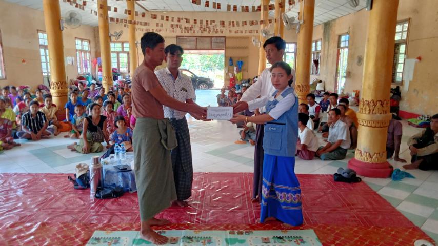 ရခိုင်ပြည်နယ်၊ အမ်းခရိုင်၊ အမ်းမြို့နယ်တွင် လူမှုဝန်ထမ်း၊ ကယ်ဆယ်ရေးနှင့်ပြန်လည်နေရာချထားရေးဝန်ကြီးဌာန၊ ဘေးအန္တရာယ်ဆိုင်ရာစီမံခန့်ခွဲမှုဦးစီးဌာနက လုံးကောက်ကျေးရွာအုပ်စု လုံးကျေးရွာ၊ ခရမ်းကျွမ်းကျေးရွာ၊ ချင်းကုန်းကျေးရွာတို့မှ ဈေးရပ်ကွက် ဓာတ်ပေါင်းစုမြတ်စွယ်တော်ဓမ္မာရုံသို့ ယာယီခိုလှုံရန်အတွက်ပြောင်းရွှေ့လာသည့် ယာယီနေရပ်စွန့်ခွာသူများ စားဝတ်နေရေးအဆင်ပြေစေရေး ဆန်ရိက္ခာဖိုးငွေကို ယနေ့နံနက်(၁၀)နာရီအချိန်က ထောက်ပံ့ပေးအပ်သည်။