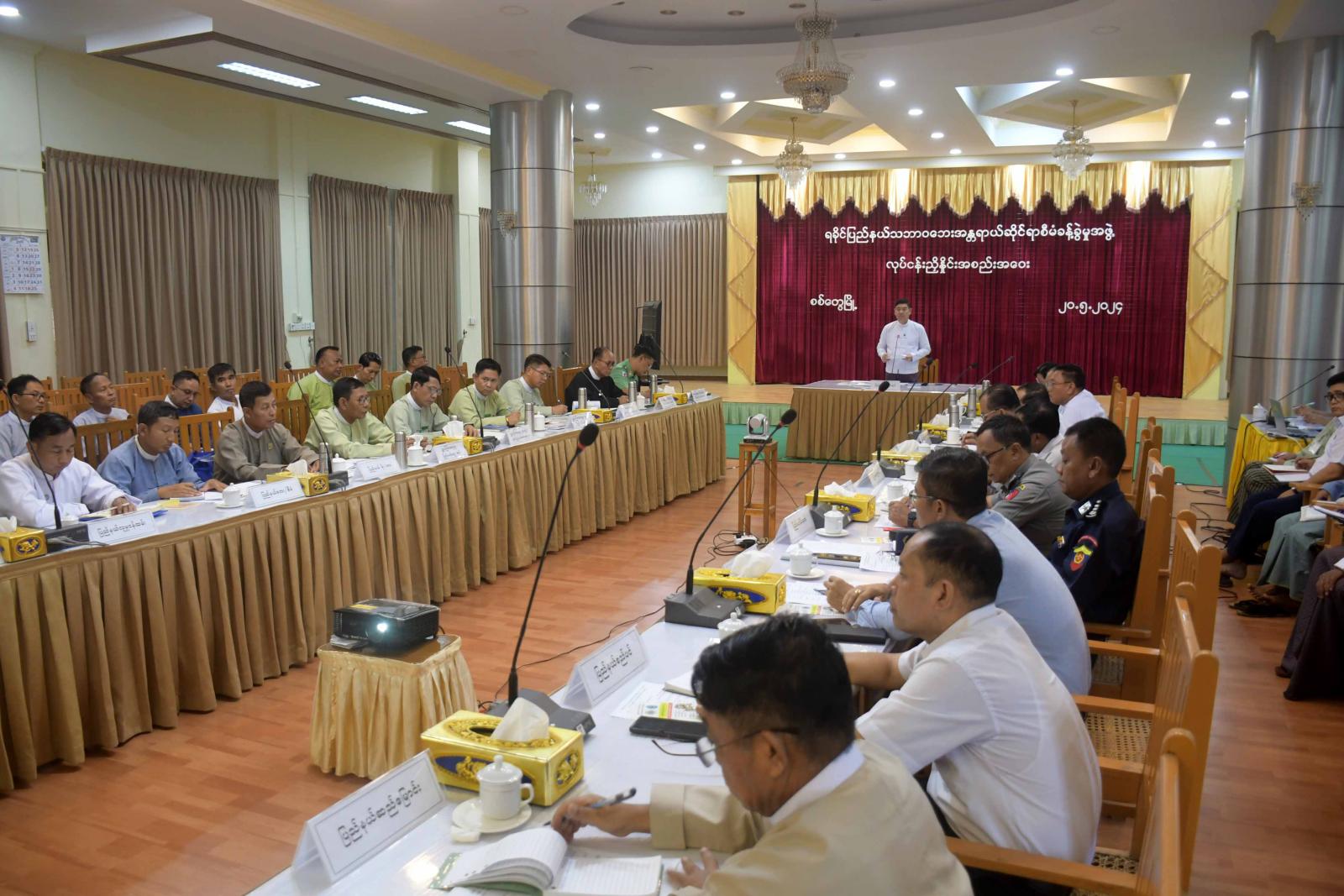 ရခိုင်ပြည်နယ် သဘာဝဘေးအန္တရာယ်ဆိုင်ရာ စီမံခန့်ခွဲမှုအဖွဲ့ လုပ်ငန်းညှိနှိုင်းအစည်းအဝေးကို ယနေ့နံနက်ပိုင်းက ရခိုင်ပြည်နယ်အစိုးရ အဖွဲ့ရုံး အစည်းအဝေးခန်းမ၌ကျင်းပရာ ရခိုင်ပြည်နယ် သဘာဝဘေးအန္တရာယ်ဆိုင်ရာ စီမံခန့်ခွဲမှုအဖွဲ့ဥက္ကဋ္ဌ၊ ရခိုင်ပြည်နယ်ဝန်ကြီးချုပ် ဦးထိန်လင်း၊ ပြည်နယ်တရားလွှတ်တော်တရားသူကြီးချုပ်၊ ပြည်နယ်အစိုးရအဖွဲ့ဝင်များ၊ ကော်မတီဝင်များနှင့် ဌာနဆိုင်ရာ တာဝန်ရှိသူများတက်ရောက်ကြပြီး ခရိုင်စီမံ အုပ်ချုပ်ရေးအဖွဲ့ဥက္ကဋ္ဌများက Video Conference စနစ်ဖြင့်တက်ရောက်ကြသည်။