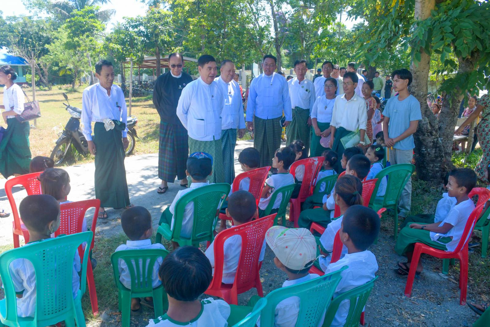 ယင်းနောက် ပြည်နယ်ဝန်ကြီးချုပ်နှင့်အဖွဲ့သည် အခြေခံပညာအထက်တန်းကျောင်းခွဲ(ရေတပ်) ကျောင်းသို့ သွားရောက်ပြီး ဆရာ၊ ဆရာမများအား ရင်းရင်းနှီးနှီးတွေ့ဆုံနှုတ်ဆက်ကာ ကျောင်းသား၊ ကျောင်းသူများ ကျောင်းအပ်နှံနေမှုကို လှည့်လည်ကြည့်ရှုအားပေးကြကာ ကျောင်းသား၊ ကျောင်းသူများအတွက် ကျောင်းသုံး စာအုပ်နှင့် သင်ထောက်ကူပစ္စည်းများကို ပေးအပ်ခဲ့ကြသည်။