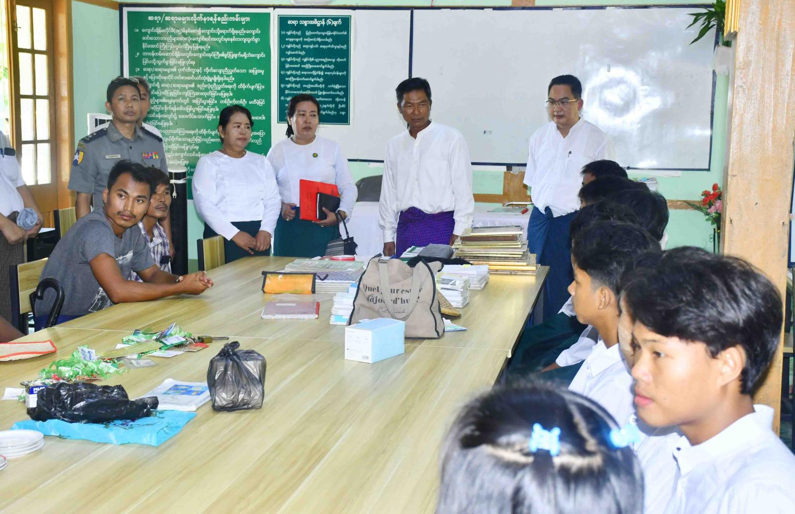 ထိုသို့ လှည့်လည်ကြည့်ရှုရာတွင် ခရိုင်စီမံအုပ်ချုပ်ရေးအဖွဲ့ဥက္ကဋ္ဌ ဦးနေမင်းသူနှင့် အဖွဲ့ဝင်များ၊ မြို့နယ်စီမံအုပ်ချုပ်ရေးအဖွဲ့ဥက္ကဋ္ဌ ဦးမျိုးမင်းထွဏ်းနှင့် အဖွဲ့ဝင်များ၊ ဌာနဆိုင်ရာ တာဝန်ရှိသူများက ကျောက်ဖြူမြို့ပေါ်ရပ်ကွက်များရှိ အခြေခံပညာကျောင်းများတွင် ကျောင်းသား၊ကျောင်းသူများအား ဆရာ၊ဆရာမများက ကျောင်းအပ်လက်ခံ ဆောင်ရွက်နေမှု အခြေအနေအား လှည့်လည်ကြည့်ရှုပြီး လိုအပ်သည်များကို လမ်းညွှန်မှာကြားကာ ပေါင်းစပ်ဆောင်ရွက်ပေးခဲ့သည်။