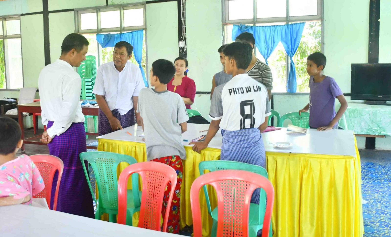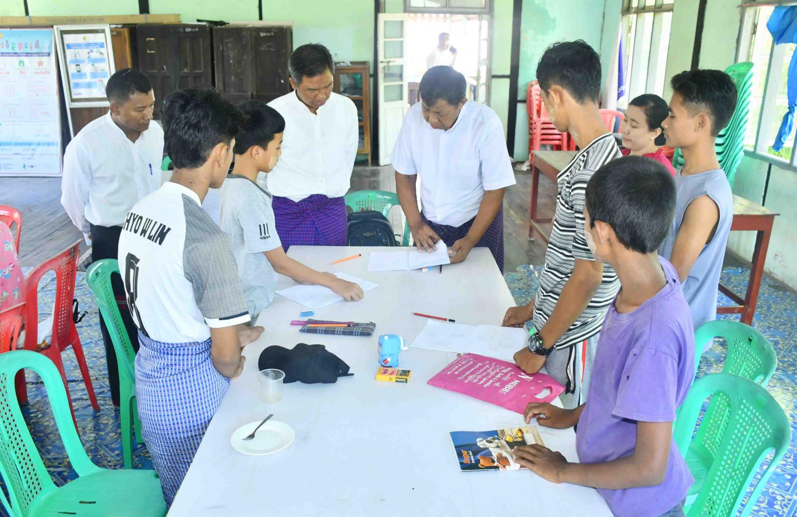 ရခိုင်ပြည်နယ်၊ ကျောက်ဖြူခရိုင်၊ ပြန်ကြားရေးနှင့်ပြည်သူ့ဆက်ဆံရေးဦးစီးဌာန၊ လူထုအခြေပြုဗဟိုဌာန Community Centre ခန်းမတွင် ခရိုင်စီမံအုပ်ချုပ်ရေးအဖွဲ့နှင့် ပြန်ကြားရေးနှင့်ပြည်သူ့ဆက်ဆံရေးဦးစီးဌာနတို့ပူးပေါင်းပြီး အခမဲ့ဖွင့်လှစ်ပြသလျက်ရှိသော အခြေခံအင်္ဂလိပ်စာသင်တန်းနှင့် အခြေခံပန်းချီသင်တန်း ပြသနေမှုအား ခရိုင်စီမံအုပ်ချုပ်ရေးအဖွဲ့ဥက္ကဋ္ဌနှင့်အဖွဲ့ဝင်များ တာဝန်ရှိသူများက ယမန်နေ့နံနက်ပိုင်းက ကြည့်ရှုအားပေးသည်။