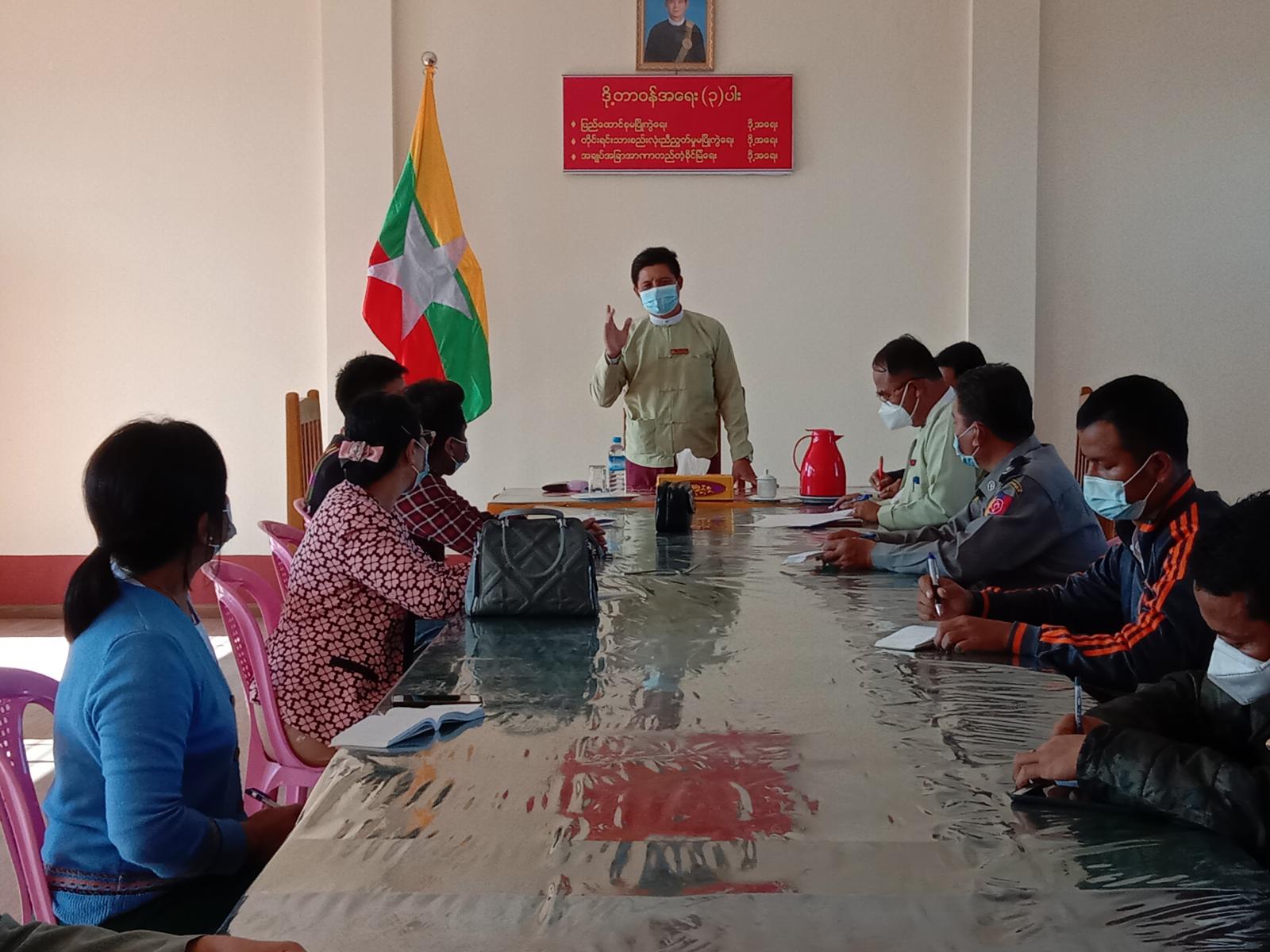 ဖလမ်း၌ ကိုဗစ်-၁၉ ကာကွယ်၊ ထိန်းချုပ်၊ ကုသရေးမြို့နယ်အဆင့်လုပ်ငန်းညှိနှိုင်းအစည်းအဝေးကို ယမန်နေ့ညနေပိုင်းက ဖလမ်းမြို့နယ်အထွေထွေအုပ်ချုပ်ရေးဦးစီးဌာန အစည်းအဝေး ခန်းမ၌ ပြုလုပ်သည်။