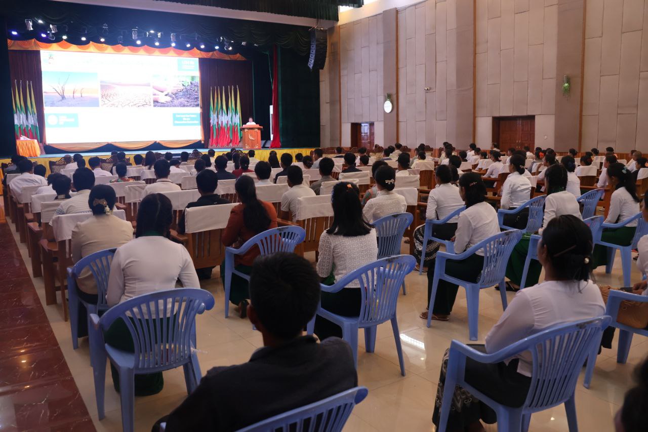 ရှေးဦးစွာ ပြည်နယ်ဝန်ကြီးချုပ် ဦးဇော်မျိုးတင်က အဖွင့်အမှာစကား ပြောကြားရာတွင် ယနေ့ကျရောက်သည့် ကမ္ဘာ့ပတ်ဝန်းကျင်ထိန်းသိမ်းရေးနေ့ ကျင်းပရခြင်း၏ ရည်ရွယ်ချက်မှာ လေထုညစ်ညမ်းမှု၊ ဇီဝမျိုးစုံ၊ မျိုးကွဲများ လျော့နည်းဆုံးရှုံးမှု ၊ ကမ္ဘာကြီးပူနွေးလာမှုနှင့် ပလတ်စတစ် ညစ်ညမ်းမှု စသည့်ပတ်ဝန်းကျင်ထိန်းသိမ်းရေးဆိုင်ရာ စိန်ခေါ်မှုများကို ဖြေရှင်းနိုင်ရန်ဖြစ်ကြောင်း၊ သဘာဝပတ်ဝန်းကျင် ပျက်စီးပါက ရာသီဥတုဆိုးကျိုးများ ဖြစ်ပေါ်လာနိုင်ကြောင်း၊ သဘာဝ ပတ်ဝန်းကျင်ထိန်းသိမ်းရေးအတွက် ဖွံ့ဖြိုးရေးလုပ်ငန်းစဉ်များတွင် ပတ်ဝန်းကျင်နှင့် သဟဇာတ ဖြစ်စေရေး၊ ဟန်ချက်ညီသည့် ဖွံ့ဖြိုးတိုးတက်မှုရရှိစေရေး၊ ကာဗွန်ထုတ်လုပ်မှု လျော့နည်းသည့် အစိမ်းရောင်စီးပွားရေး ရင်းနှီးမြှပ်နှံမှုများကို အားပေးမြှင့်တင်ရေး၊ ရာသီဥတုပြန်လည်မျှတစေရေး နှင့် ဂေဟစနစ်များ ထိန်းသိမ်းရေး၊ စွန့်ပစ်ပစ္စည်းစီမံခန့်ခွဲမှုနှင့် စပ်လျဉ်း၍ ညစ်ညမ်းမှုထိန်းသိမ်း ကာကွယ်ရေးတို့ကို အမျိုးသားရေးတာဝန်တစ်ရပ်အဖြစ် ဌာနဆိုင်ရာ တာဝန်ရှိသူများက ပြည်သူလူထုနှင့် ပေါင်းစပ်ညှိနှိုင်း အကောင်အထည်ဖော် ဆောင်ရွက်သွားကြရမည် ဖြစ်ကြောင်း ပြောကြားခဲ့သည်။