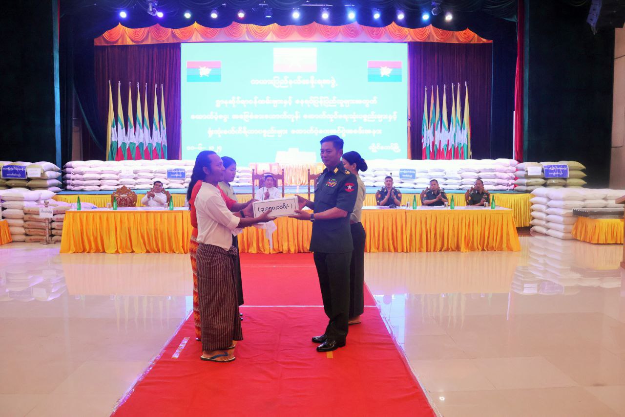 ဆက်လက်၍ ကာကွယ်ရေးဦးစီးချုပ်ရုံး(ကြည်း)မှ ဗိုလ်ချုပ်နိုင်နိုင်ဦးနှင့် အရှေ့ပိုင်းတိုင်း စစ်ဌာနချုပ်တိုင်းမှူး ဗိုလ်ချုပ်ဇော်မင်းလတ်တို့က နယ်မြေတည်ငြိမ်အေးချမ်းမှု ရှိစေရေးနှင့် ဒေသဖွံ့ဖြိုးရေးအတွက် ဆောင်ရွက်ပေးနေမှု အခြေအနေများ၊ ပြည်သူလူထုနှင့် ဝန်ထမ်းများအား ကူညီဆောင်ရွက်ပေးလျက်ရှိသည့် အခြေအနေများနှင့်ပတ်သက်၍ အသီးသီး အမှာစကားများ ပြောကြားခဲ့သည်။ ထို့နောက် ပြည်နယ်အတွင်း လုံခြုံရေးတာဝန် ထမ်းဆောင်လျက်ရှိသည့် တပ်မတော်သားများနှင့် မြန်မာနိုင်ငံရဲတပ်ဖွဲ့ဝင်များအတွက် ဂုဏ်ပြုချီးမြှင့်ငွေနှင့် အခြေခံစားသောက်ကုန်များ ပေးအပ်ခြင်း၊ ပြန်လည်တာဝန်ထမ်းဆောင်ရန် ရောက်ရှိလာသည့် ဌာနဆိုင်ရာဝန်ထမ်းများအတွက် ဆန်၊ ဆီ၊ ပဲ၊ ထောက်ပံ့ငွေနှင့် ရုံးသုံးစက်ကိရိယာများ ပေးအပ်ခြင်း၊ မြို့ပေါ်ရပ်ကွက်(၄)ခုနှင့် ကျေးရွာအုပ်စု တစ်စုမှ နေရပ်ပြန်ပြည်သူများအတွက် ဆန်၊ ဆီ၊ ထောက်ပံ့ငွေများ ပေးအပ်ခြင်း၊ ယာယီနေရပ်စွန့်ခွာ ပြည်သူများအတွက် ဆန်၊ ဆီနှင့် ထောက်ပံ့ငွေ ပေးအပ်ခြင်း၊ သာသနိကအဆောက်အအုံများ ပြန်လည်ပြုပြင်ရန်အတွက် ဘိလပ်မြေနှင့် သွပ်များအား ပြည်နယ်ဝန်ကြီးချုပ်နှင့် တာဝန်ရှိသူများက ထောက်ပံ့ပေးအပ်ရာ တက်ရောက်လာသူများကိုယ်စား ကိုယ်စားလှယ်များက လက်ခံရယူခဲ့ကြပြီး နေရပ်ပြန်ပြည်သူတစ်ဦးက ကျေးဇူးတင်စကား ပြောကြားခဲ့သည်။