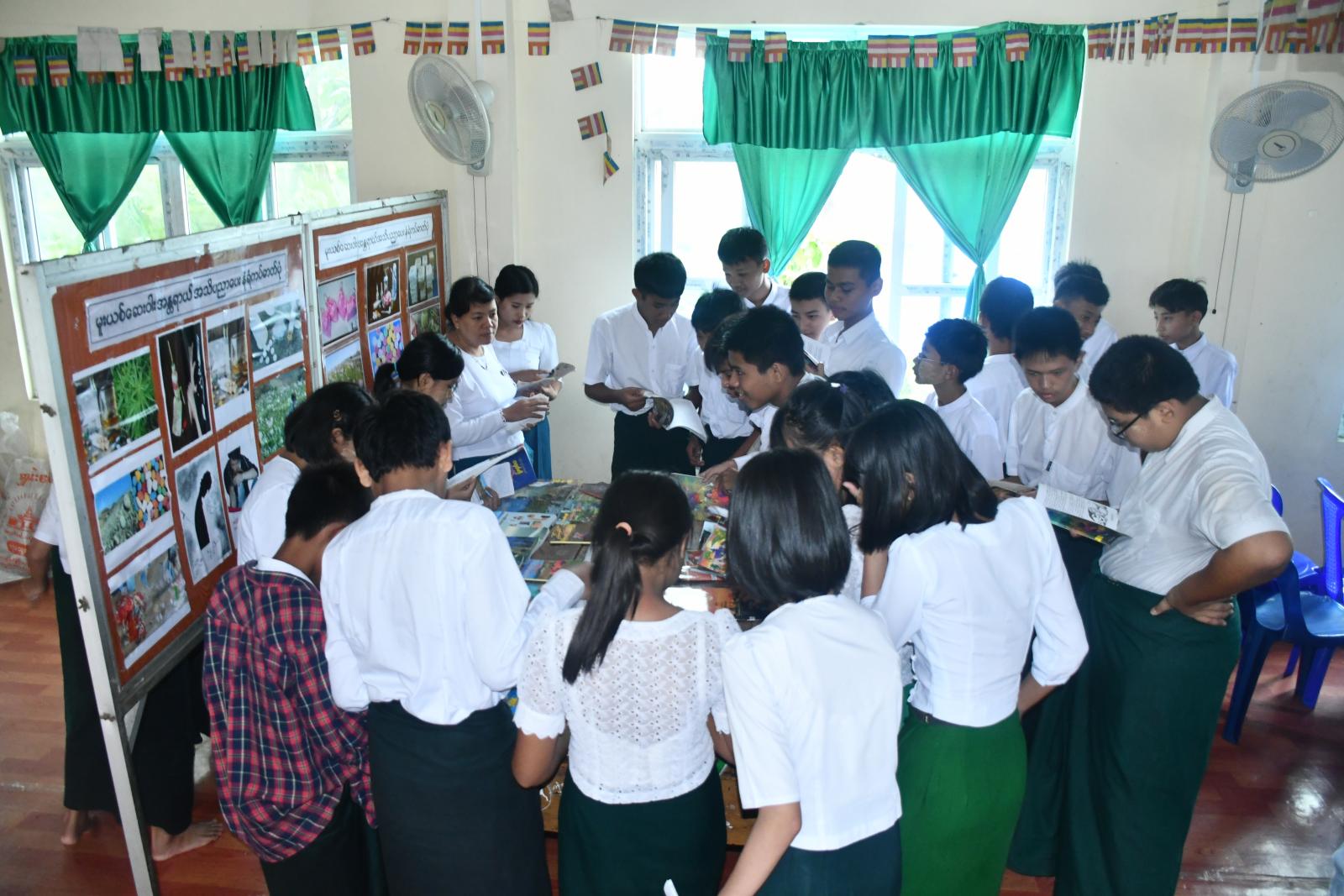 ဆက်လက်၍ စာဖတ်စွမ်းရည်ပြိုင်ပွဲကိုပြုလုပ်ခဲ့ရာ ကျောင်းသား၊ ကျောင်းသူ ၁၀ ဦးမှ မိမိနှစ် သက်ရာစာအုပ်အသီးသီးမှ ခေါင်းစဉ်များဖြင့် ဝင်ရောက်ယှဉ်ပြိုင်ခဲ့ကြပြီး ယင်းသို့ဝင်ရောက်ယှဉ်ပြိုင်သည့် ကျောင်းသား၊ ကျောင်းသူများအား တာဝန်ရှိသူများက အမှတ်တရဂုဏ်ပြုလက်ဆောင်များပေးအပ်ချီးမြှင့်သည်။ ထို့နောက် ကျောင်းသား၊ ကျောင်းသူများသည် ပြန်ကြားရေးနှင့်ပြည်သူ့ဆက်ဆံရေးဦးစီးဌာနမှ ခင်းကျင်းပြသထားသည့် သုတ၊ ရသစာအုပ်စာစောင်များနှင့် မူးယစ်ဆေးဝါးအန္တရာယ် အသိပညာပေးနံရံကပ်ဓာတ်ပုံများအား စိတ်ပါဝင်စားစွာဖြင့် လေ့လာကြည့်ရှုခဲ့ကြကြောင်း သိရသည်။