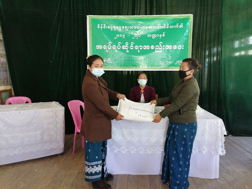 ချင်းပြည်နယ် ဒိန်ဒီးငွေစုငွေချေးသမဝါယမအသင်း ဥက္ကဋ္ဌ ရွေးကောက်တင်မြှောက်ခြင်းနှင့် အသင်းသား(၃၂)ဦးအတွက် ဆန်အိတ်များထောက်ပံ့ခြင်းအခမ်းအနားကို ကိုဗစ်-၁၉ ရောဂါ ထိန်းချုပ်ရေးနှင့် အရေးပေါ်တုံ့ပြန်ရေးကာလအတွင်း ကျန်းမာရေးနှင့် အားကစားဝန်ကြီးဌာန၏ လမ်းညွှန်ချက်များနှင့်အညီ ယမန်နေ့ နံနက် ၉နာရီအချိန်က ဟားခါးမြို့၊ ချင်းပြည်နယ် သမဝါယမဦးစီးဌာနရုံး အစည်းအဝေးခန်းမ၌ ကျင်းပခဲ့ကြောင်း သိရှိရသည်။