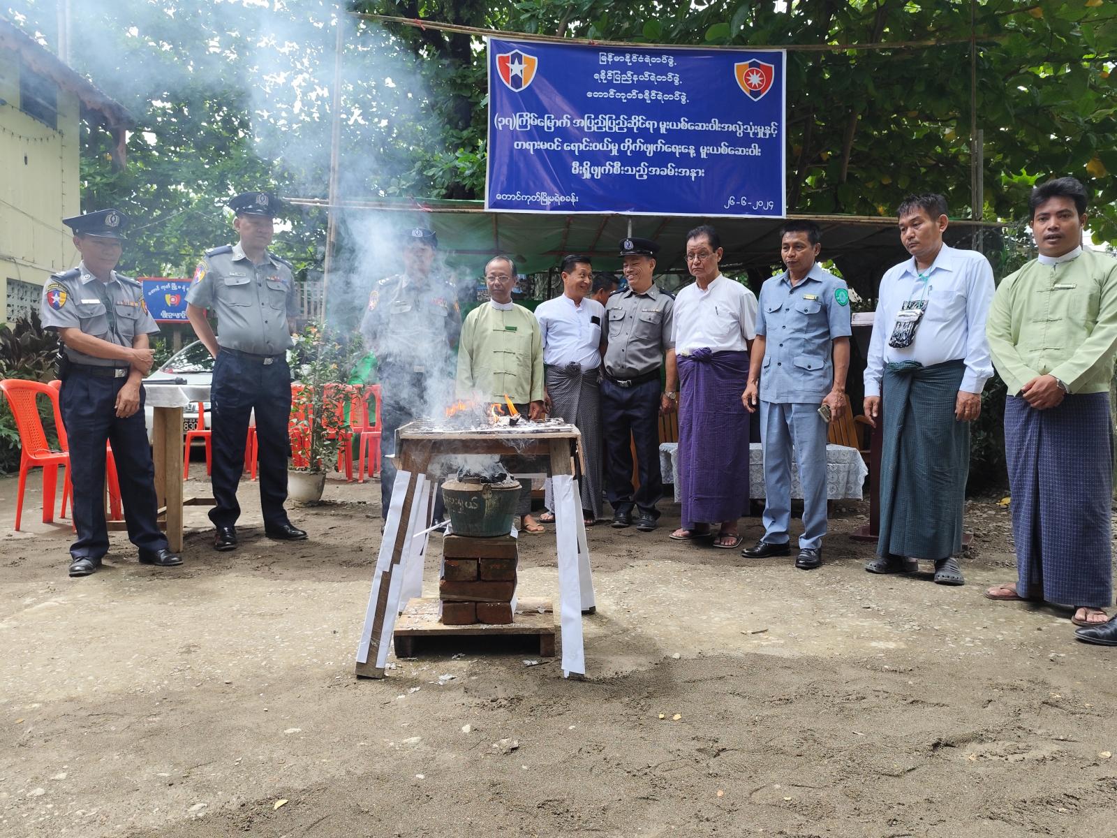 တောင်ကုတ်ခရိုင်၊ တောင်ကုတ်မြို့၌ (၃၇) ကြိမ်မြောက် အပြည်ပြည်ဆိုင်ရာ မူးယစ်ဆေးဝါးအလွဲသုံးမှုနှင့် တရားမဝင်ရောင်းဝယ်မှု တိုက်ဖျက်ရေးနေ့ မူးယစ်ဆေးဝါးမီးရှို့ဖျက်ဆီးသည့် အခမ်းအနားကို ယနေ့ နံနက် (၁၀) နာရီအချိန်က မြို့မရဲစခန်းရှေ့၌ ကျင်းပခဲ့သည်။