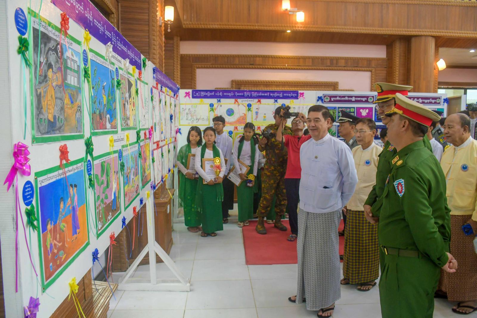 ယင်းနောက် မူးယစ်ဆေးဝါးနှင့် စိတ်ကို ပြောင်းလဲစေသော ဆေးဝါးများအန္တရာယ်တားဆီး ကာ ကွယ်ရေးဗဟိုအဖွဲ့၏ ဆောင်ရွက်ချက်မှတ်တမ်းဗွီဒီယိုအား ပြသပြီး ဆုရကျောင်းသား၊ ကျောင်းသူများ နှင့်မှတ်တမ်းတင်ဓာတ်ပုံ ရိုက်ကူးကာ ခန်းမအတွင်း ပြသထားသည့် အသိပညာပေးဓာတ်ပုံများ၊ နံရံကပ် စာစောင်များ၊ ဆုရကျောင်းသား၊ ကျောင်းသူများ၏ ပန်းချီး၊ ကာတွန်း၊ ပိုစတာပြိုင်ပွဲများ ပြသထားရှိမှုကို လှည့်လည်ကြည့်ရှုခဲ့ကြသည်။