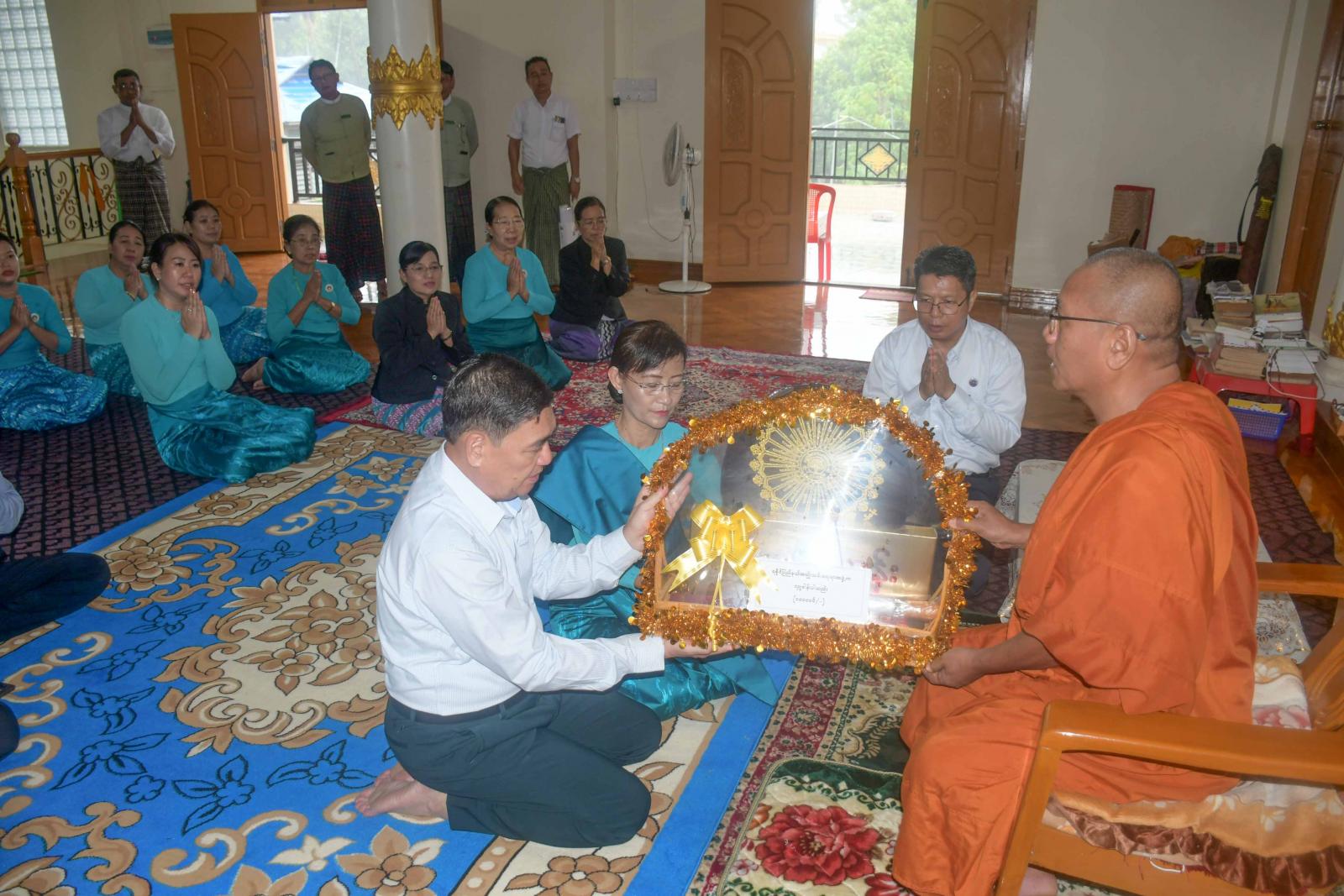 ထို့နောက် ပြည်နယ်ဝန်ကြီးချုပ်နှင့်အဖွဲ့သည် ဂြစ်ဘက်ဘုန်းတော်ကြီးကျောင်းတိုက်သို့ သွားရောက်ပြီး ကျောင်းထိုင်ဆရာတော်အား ဖူးမြော်ကာ လှူဖွယ်ဝတ္ထုပစ္စည်းများဆက်ကပ်လှူဒါန်းကြသည်။ ဆက်လက်၍ ကျောင်းတိုက်ခြံဝင်းအတွင်း မြန်မာအမျိုးသမီးနေ့အကြိုအထိမ်းအမှတ် စုပေါင်းသန့်ရှင်းရေး ဆောင်ရွက်နေမှုအား လှည့်လည်ကြည့်ရှုအားပေးကြပြီး လိုအပ်သည်များကို တာဝန်ရှိသူများနှင့် ပေါင်းစပ်ညှိနှိုင်းဆောင်ရွက်ပေးခဲ့သည်။