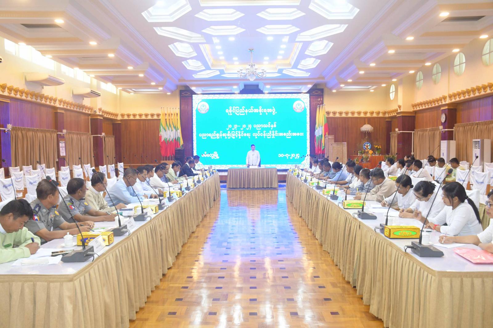 ဆက်လက်၍ ပြည်နယ်အစိုးရအဖွဲ့ဝင်များနှင့် တာဝန်ရှိသူများက ပညာရည်ချွန်ဆုချီးမြှင့်ပွဲ အောင်မြင်စွာကျင်းပနိုင်ရေးနှင့်ပတ်သက်ပြီး ဆောင်ရွက်ထားရှိမှုနှင့် ဆက်လက်ဆောင်ရွက်မည့်အစီ အမံများကို ရှင်းလင်းတင်ပြကြသည်။