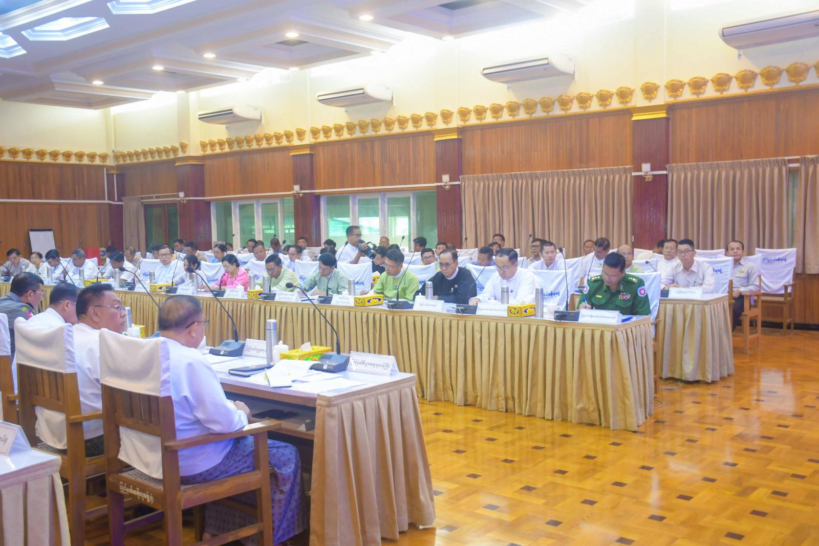 ဆက်လက်၍ ပြည်နယ်အစိုးရအဖွဲ့ဝင်များက ရုံးများသန့်ရှင်းသာယာရေး၊ လုံခြုံရေး၊ ဝန်ထမ်း များခရီးသွားလာရေး၊ ပညာရေး၊ စီးပွားရေး၊ အခွန်အခများပြည့်မီစွာကောက်ခံရရှိနိုင်ရေး စသည့်ကဏ္ဍများကို မိမိတို့ဝန်ကြီးဌာနအလိုက် လုပ်ငန်းဆောင်ရွက်နေမှုများနှင့် စပ်လျဉ်း၍ ဆွေးနွေးတင်ပြကြသည်။