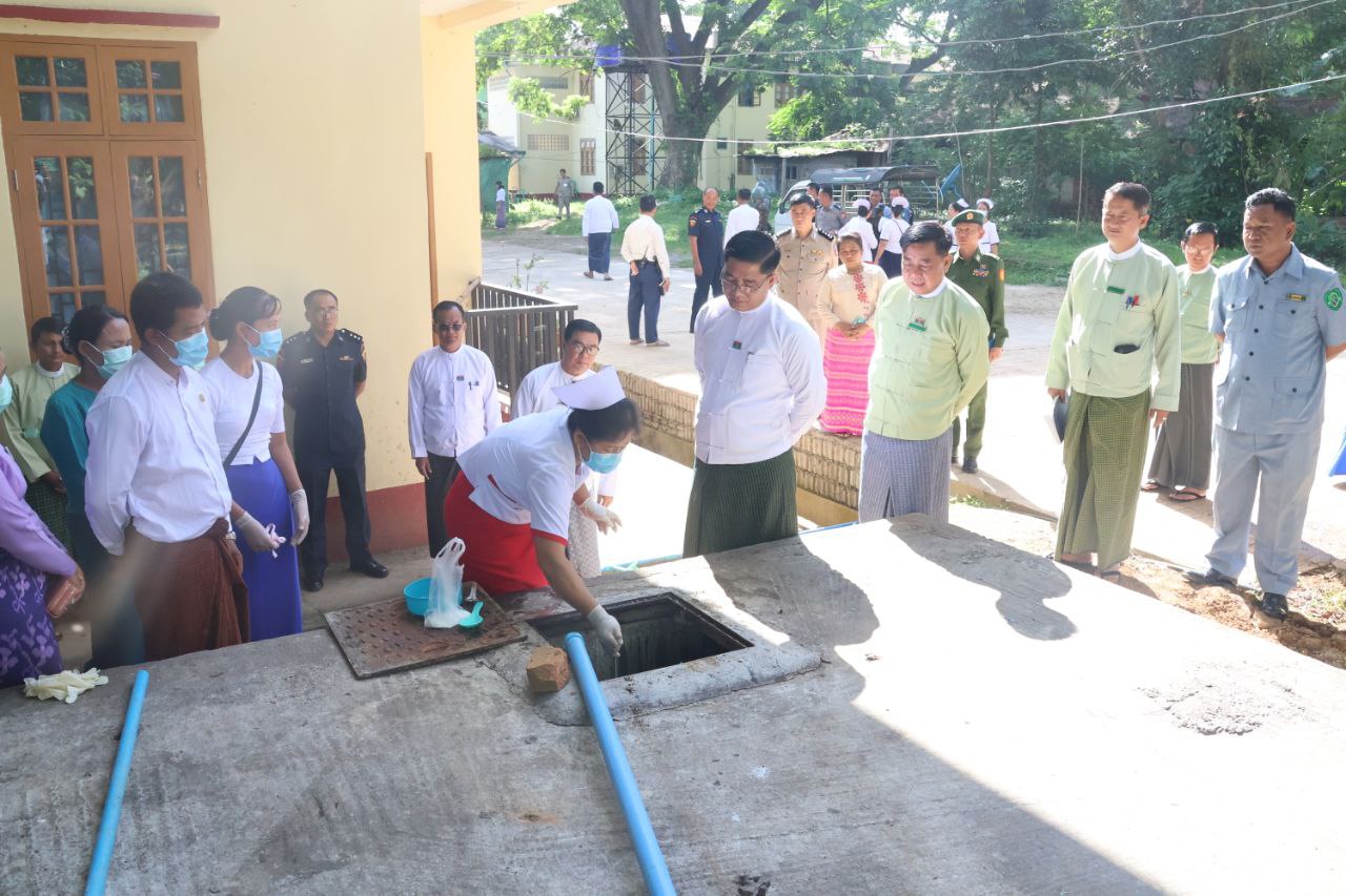 ဆက်လက်၍ ပြည်နယ်ဝန်ကြီးချုပ်နှင့်တာဝန်ရှိသူများက ဌာနဆိုင်ရာဝန်ထမ်းများ နေထိုင်လျက်ရှိသည့် ပြည်သူ့ကျန်းမာရေးဝန်ထမ်းအိမ်ယာဝန်း၊ မြို့နယ်အထွေထွေအုပ်ချုပ်ရေး ဦးစီးဌာနအိမ်ရာဝန်းနှင့် သူနာပြုသင်တန်းကျောင်းဝန်းအတွင်း Chlorine ဆေးခပ်ခြင်း၊ ခြင်ဆေးဖြန်းခြင်းနှင့် Bleaching powder ဖြူးခြင်းစသည့် ကျန်းမာရေးဝန်ဆောင်မှု ဆောင်ရွက်နေမှုများအား လိုက်လံကြည့်ရှုအားပေးခဲ့ကြောင်း သိရသည်။