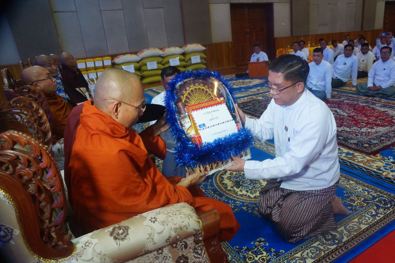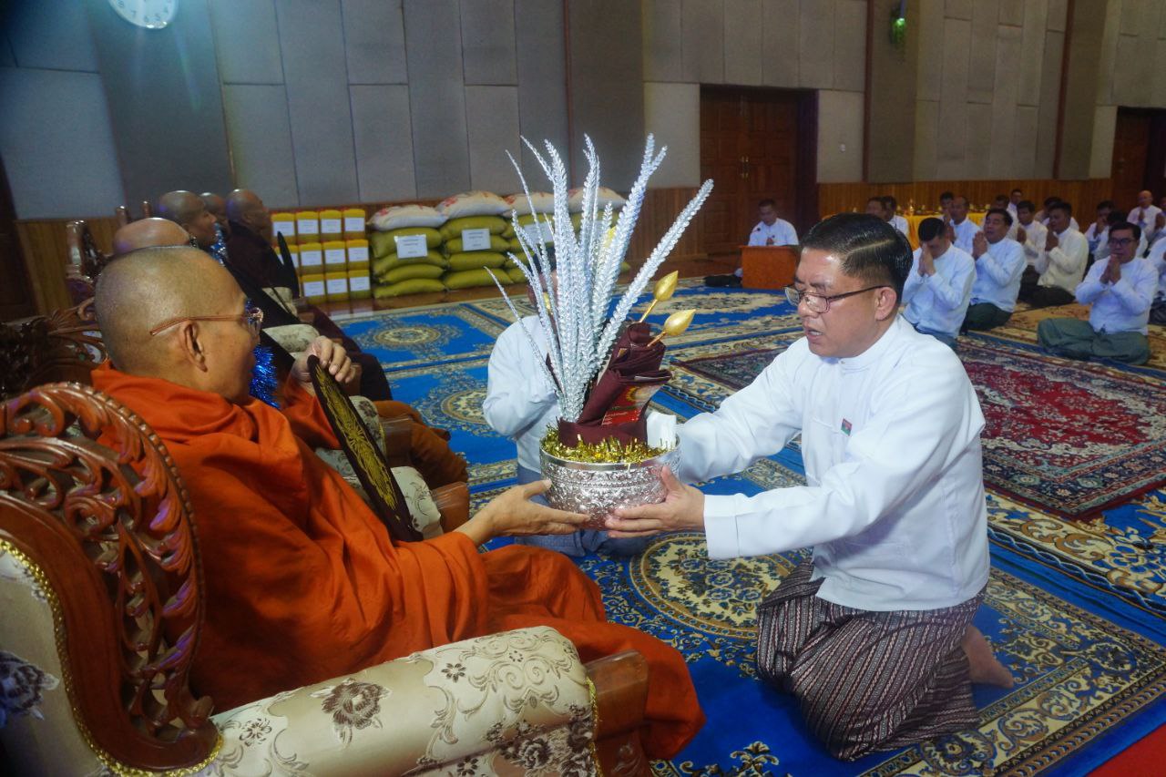 ဆက်လက်၍ ဆရာတော်သံဃာတော်များထံမှ ပရိတ်တရားတော်များ နာယူကြည်ညိုကြပြီး ကယားပြည်နယ်ဝန်ကြီးချုပ်၊ အရှေ့ပိုင်းတိုင်းစစ်ဌာနချုပ်၊ တိုင်းမှူးနှင့်တာဝန်ရှိသူများက ဆရာတော်သံဃာတော် အရှင်သူမြတ်များအား ဝါဆိုသင်္ကန်းနှင့် လှူဖွယ်ဝတ္ထုပစ္စည်းများ ဆက်ကပ်လှူဒါန်းခဲ့ကြပြီး ပြည်နယ်ဝန်ကြီးချုပ်ဇနီးနှင့် တာဝန်ရှိသူများက သီလရှင် ဆရာကြီးများအား သီလရှင်ဝတ်စုံနှင့် လှူဖွယ်ဝတ္ထုပစ္စည်းများ ဆက်ကပ်လှူဒါန်းခဲ့ကြသည်။