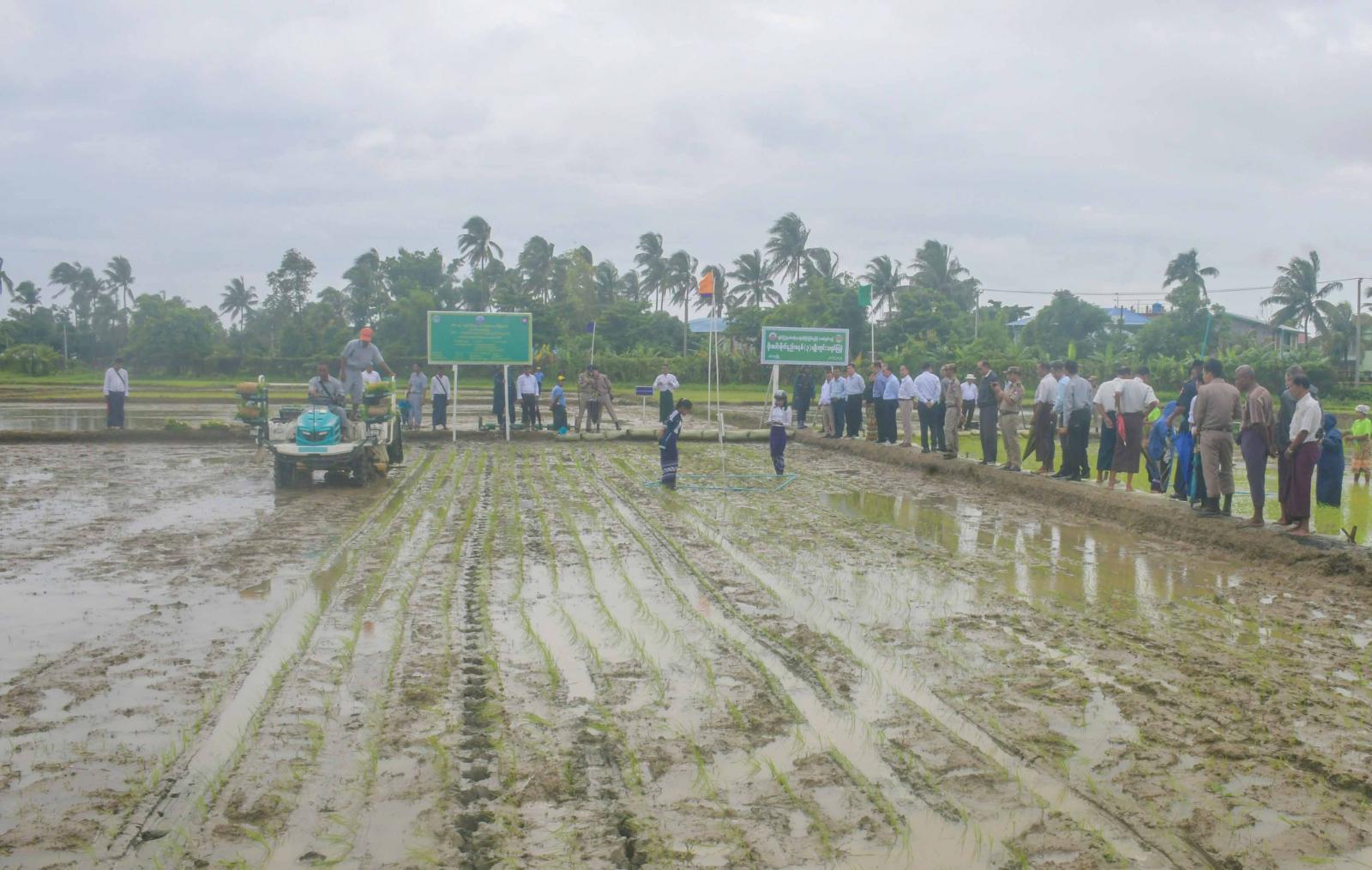 ရခိုင်ပြည်နယ်အစိုးရအဖွဲ့၏ ကြီးကြပ်မှုဖြင့် ဆောင်ရွက်သည့် မိုးစပါးစိုက်နည်းစနစ်(၃)မျိုး ကွင်းသရုပ်ပြပွဲကို ယနေ့နံနက်ပိုင်းက စစ်တွေမြို့၊ အနောက်စံပြရပ်ကွက်၊ စံပြစိုက်ကွင်း၌ ကျင်းပရာ ရခိုင်ပြည်နယ်ဝန်ကြီးချုပ် ဦးထိန်လင်း၊ ပြည်နယ်တရားလွှတ်တော်တရားသူကြီး ချုပ်၊ ပြည်နယ်အစိုးရအဖွဲ့ဝင်များ၊ ဌာနဆိုင်ရာများ၊ စိုက်ပျိုးရေးဦးစီးဌာနမှဝန်ထမ်းများနှင့် တောင်သူလယ်သမားများ တက်ရောက်ကြသည်။