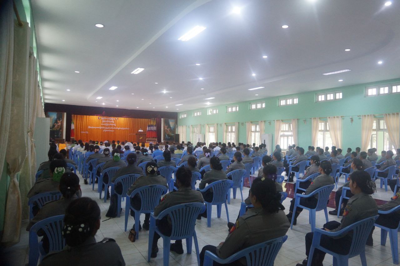 ကယားပြည်နယ် ရဲတပ်ဖွဲ့ရှိမှီခိုသူရဲမေများ အခြေခံစစ်ရေးပြနှင့် လက်နက်ငယ် ကျွမ်းကျင်မှုသင်တန်းဖွင့်ပွဲအခမ်းအနားကို ယနေ့နံနက်ပိုင်းက လွိုင်ကော်မြို့၊ မြို့နယ်ခန်းမ၌ကျင်းပရာ ကယားပြည်နယ်ဝန်ကြီးချုပ် ဦးဇော်မျိုးတင် ၊ ဒေသကွပ်ကဲရေးမှူး ၊ ပြည်နယ်အစိုးရအဖွဲ့ဝင်များ ၊ ဌာနဆိုင်ရာများ ၊ မြန်မာနိုင်ငံရဲတပ်ဖွဲ့ဝင်များနှင့် သင်တန်းသူမှီခိုရဲမေများ တက်ရောက်ခဲ့ကြသည်။