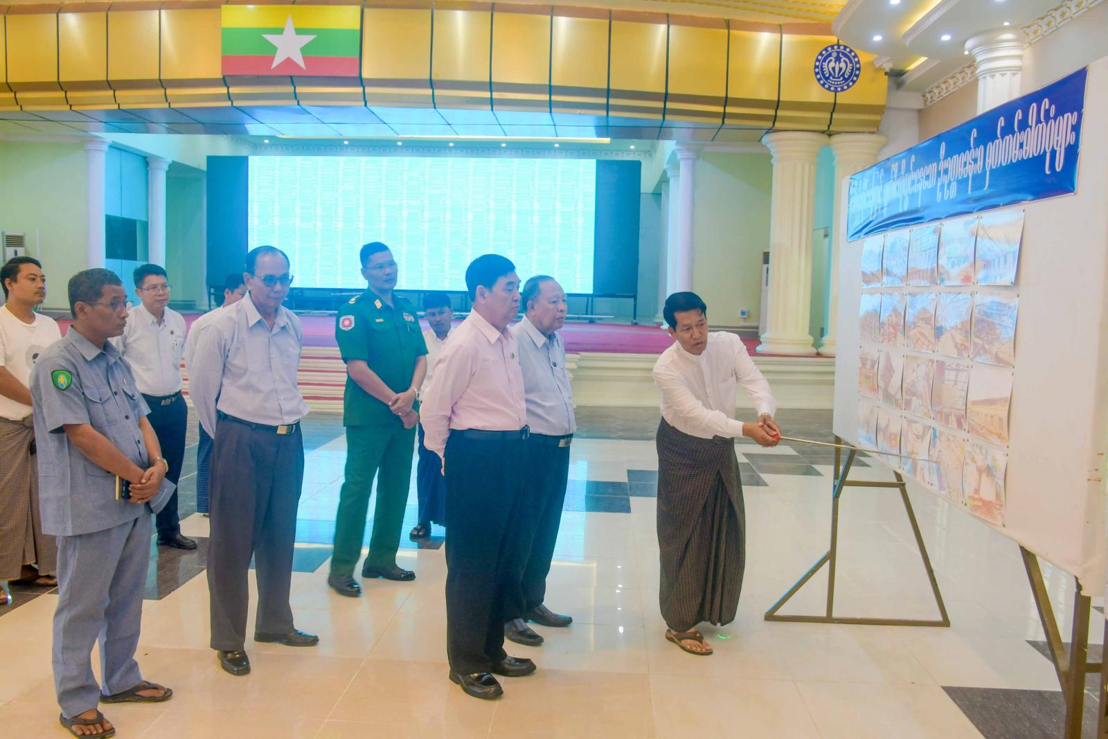 ပြည်နယ်ဝန်ကြီးချုပ်နှင့်အဖွဲ့သည် စစ်တွေမြို့၊ ဦးဥတ္တမခန်းမအား အဆင့်မြှင့်တင်ဆောင်ရွက်ပြီးစီးမှုကို သွားရောက်ကြည့်ရှုစစ်ဆေးရာ ဆောက်လုပ်ရေးလုပ်ငန်းတာဝန်ခံက လုပ်ငန်းစတင်ဆောင်ရွက်ခဲ့မှုနှင့် ဆောင်ရွက်ပြီးစီးနေမှုတို့ကို ရှင်းလင်းတင်ပြရာ ပြည်နယ်ဝန်ကြီးချုပ်က ခန်းမသန့်ရှင်းသာယာရေးနှင့် ခန်းမအတွင်းလိုအပ်သည်များကို ဖြည့်ဆည်းဆောင်ရွက်နိုင်ရေး လမ်းညွှန်မှာကြားခဲ့သည်။ ဆက်လက်၍ ပြည်နယ်ဝန်ကြီးချုပ်နှင့်အဖွဲ့သည် ခန်းမအတွင်း LED ဘုတ်အား အဆင့်မြှင့်တင်ဆောင်ရွက်နိုင်ရေးနှင့် နားနေခန်းအတွင်း လိုအပ်သည်များကို ဖြည့်ဆည်းဆောင်ရွက်နိုင်ရေး လှည့်လည်ကြည့်ရှုစစ်ဆေးကြသည်။
