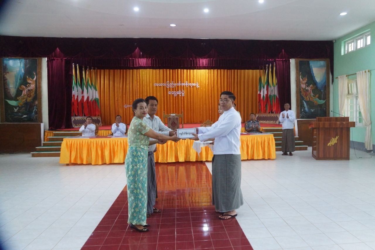 ၂၀၂၄-၂၀၂၅ ဘဏ္ဍာရေးနှစ် တည်ဆောက်ရေးလုပ်ငန်းများနှင့် ပြန်လည်ထူထောင်ရေး လုပ်ငန်းများ အရှိန်အဟုန်တိုးမြှင့်ဆောင်ရွက်နိုင်ရေးအတွက် ပြည်နယ်အတွင်းရှိ လုပ်ငန်းရှင်များနှင့်တွေ့ဆုံပွဲ အခမ်းအနားကို ယမန်နေ့နံနက်ပိုင်းက လွိုင်ကော်မြို့၊ မြို့နယ်ခန်းမ၌ကျင်းပခဲ့ရာ ကယားပြည်နယ်ဝန်ကြီးချုပ် ဦးဇော်မျိုးတင်၊ ပြည်နယ်အစိုးရ အဖွဲ့ဝင်များ၊ ဌာနဆိုင်ရာများနှင့် ပြည်နယ်တွင်း လုပ်ငန်းရှင်များ တက်ရောက်ခဲ့ကြသည်။