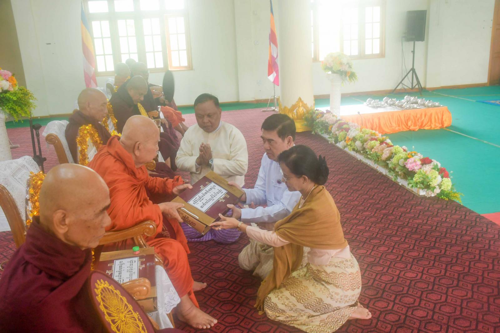 ယင်းနောက် ပြည်နယ်ဝန်ကြီးချုပ်နှင့်ဇနီး၊ ပြည်နယ်အစိုးရအဖွဲ့ဝင်များနှင့် တာဝန်ရှိသူများက သံဃာတော်အရှင်သူမြတ်များအား ဝါဆိုသင်္ကန်းနှင့် လှူဖွယ်ဝတ္ထုများ ဆက်ကပ်လှူဒါန်းကြသည်။