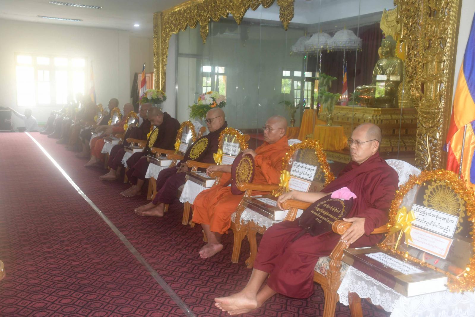 ထို့နောက် မြို့နယ်ဩဝါဒါစရိယ၊ စစ်တွေမြို့၊ ပညာလင်္ကာရကျောင်းတိုက် ပဓာနနာယကဆရာတော် အဂ္ဂမဟာဂန္ထဝါစကပဏ္ဍိတ ဘဒ္ဒန္တနာဂိန္ဒ မဟာထေရ်မြတ်ထံမှ ပြည်နယ်ဝန်ကြီးချုပ်အမှူးပြုသော ဧည့်ပရိတ်သတ်များက အနုမောဒနာ တရားနာယူ၍ လှူဒါန်းမှုအစုစုအတွက် ရေစက်သွန်း ချအမျှပေးဝေကြပြီး အခမ်းအနားအပြီးတွင် သံဃာတော်အရှင်သူမြတ်များအား နေ့ဆွမ်းဆက်ကပ် လှူဒါန်းခဲ့ကြကြောင်း သတင်းရရှိသည်။