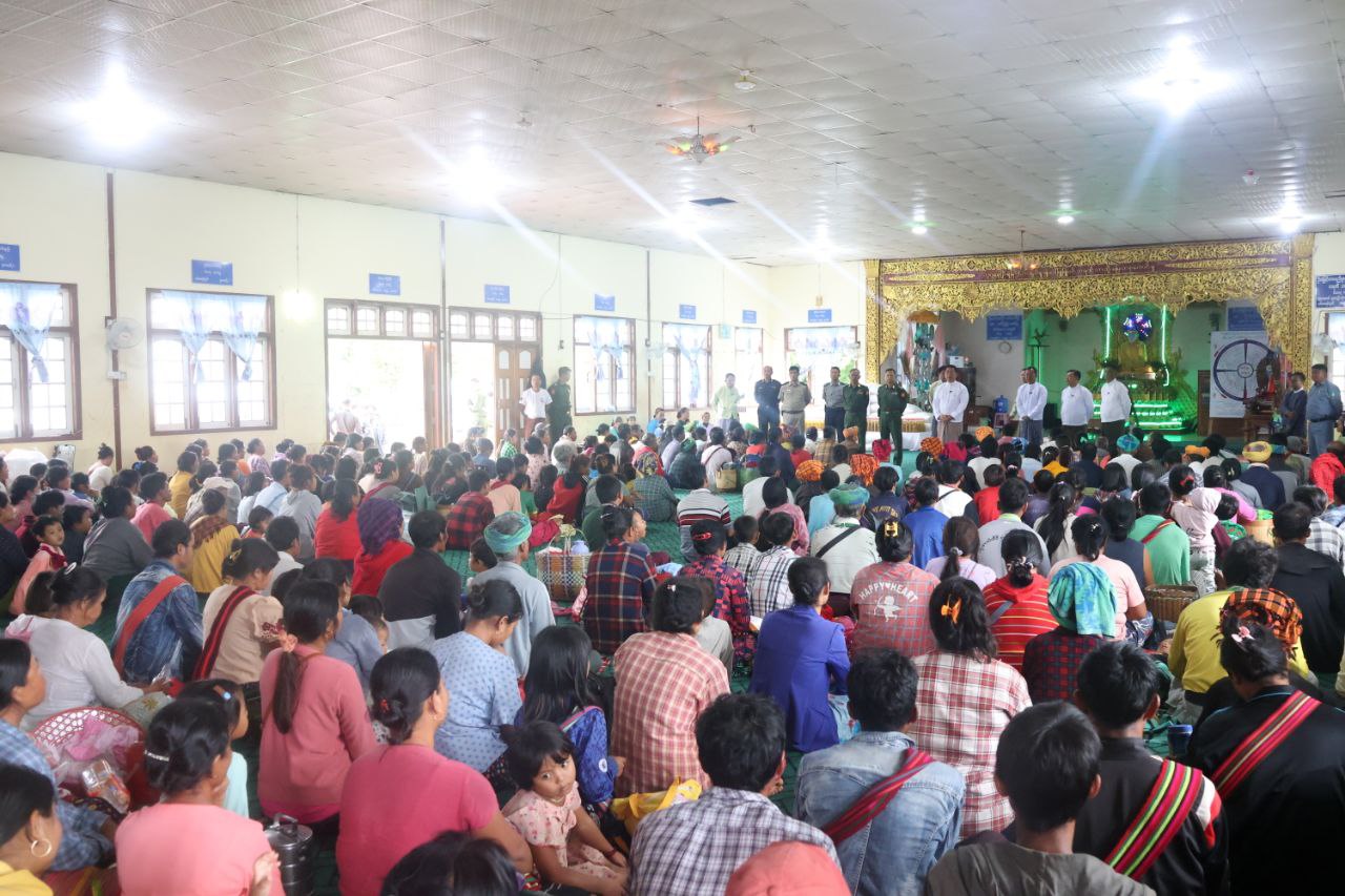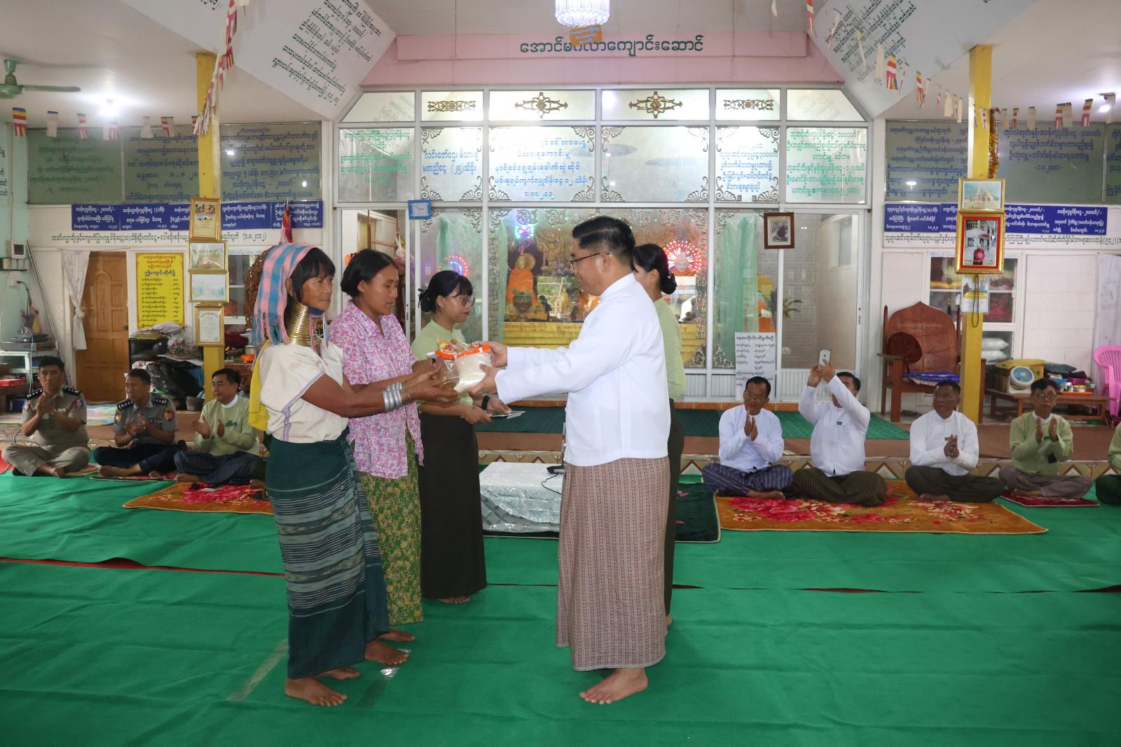 ထို့နောက် ပြည်နယ်ဝန်ကြီးချုပ် ဦးဇော်မျိုးတင်၊ ဒေသကွပ်ကဲရေးမှူး၊ ပြည်နယ်အစိုးရ အဖွဲ့ဝင်များနှင့်တာဝန်ရှိသူများသည် လွိုင်ကော်မြို့ရှိ မင်္ဂလာဂန္ဓာရုံစာသင်တိုက်သို့ သွားရောက်၍ ပန်ကန်းကျေးရွာ၊ ရွာတန်းရှည်ကျေးရွာနှင့် ဒေါဆန်းဘွန်းကျေးရွာမှ ယာယီနေရပ်စွန့်ခွာပြည်သူများအား ရင်းရင်းနှီးနှီး တွေ့ဆုံအားပေးစကား ပြောကြားခဲ့ပြီး ဆန်၊ ဆီ၊ ခေါက်ဆွဲခြောက်နှင့် ထောက်ပံ့ငွေများပေးအပ်ကာ ပြည်သူများ၏ တင်ပြချက်များအပေါ်တွင် လိုအပ်သည်များ ကူညီဖြည့်ဆည်းဆောင်ရွက်ပေးခဲ့သည်။