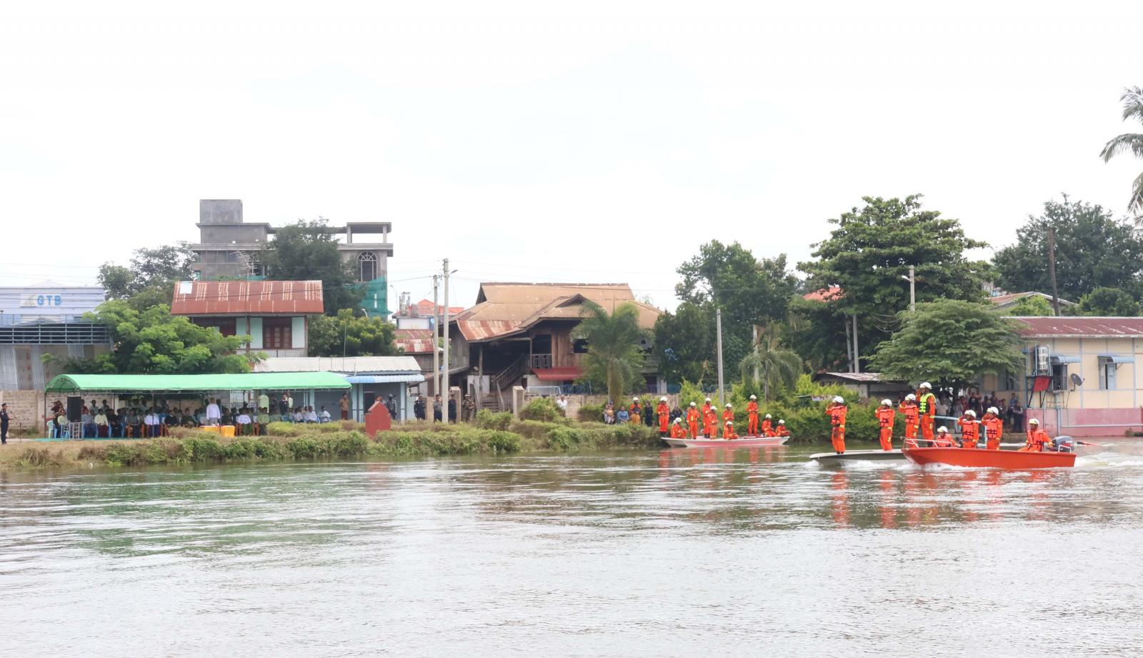 ဆက်လက်၍ ပြည်နယ်ဝန်ကြီးချုပ်နှင့်တာဝန်ရှိသူများသည် ရေပြင်အသက်ကယ်လေ့ကျင့် သရုပ်ပြသခြင်းပြုလုပ်မည့် ဘီလူးချောင်းဘေးနေရာသို့သွားရောက်ကာ ရေပြင်ကယ်ဆယ်ရေး အဖွဲ့များ၏သရုပ်ပြလေ့ကျင့်ခန်းဖြစ်သည့် ရေပြင်တွင်မျှောပါနေသည့် ပြည်သူနှစ်ဦးအား စက်လှေဖြင့် ကယ်ဆယ်ခြင်း၊ ရေပြင်တွင်မျှောပါနေသည့် ပြည်သူငါးဦးကို ရေပြင်ကယ်ဆယ်ရေး ကိရိယာ (Intellegent Lifebuoy)များဖြင့်ကယ်ဆယ်ခြင်း ၊ ရေပြင်တွင် မျှောပါနေသည့် ပြည်သူနှစ်ဦးကို ရေပြင်ကယ်ဆယ်ရေးကိရိယာ (Intellegent Lifebuoy)များဖြင့် ကယ်ဆယ်ခြင်းစသည့် သရုပ်ပြသ လေ့ကျင့်မှုအား ကြည့်ရှုအားပေးခဲ့ကြသည်။