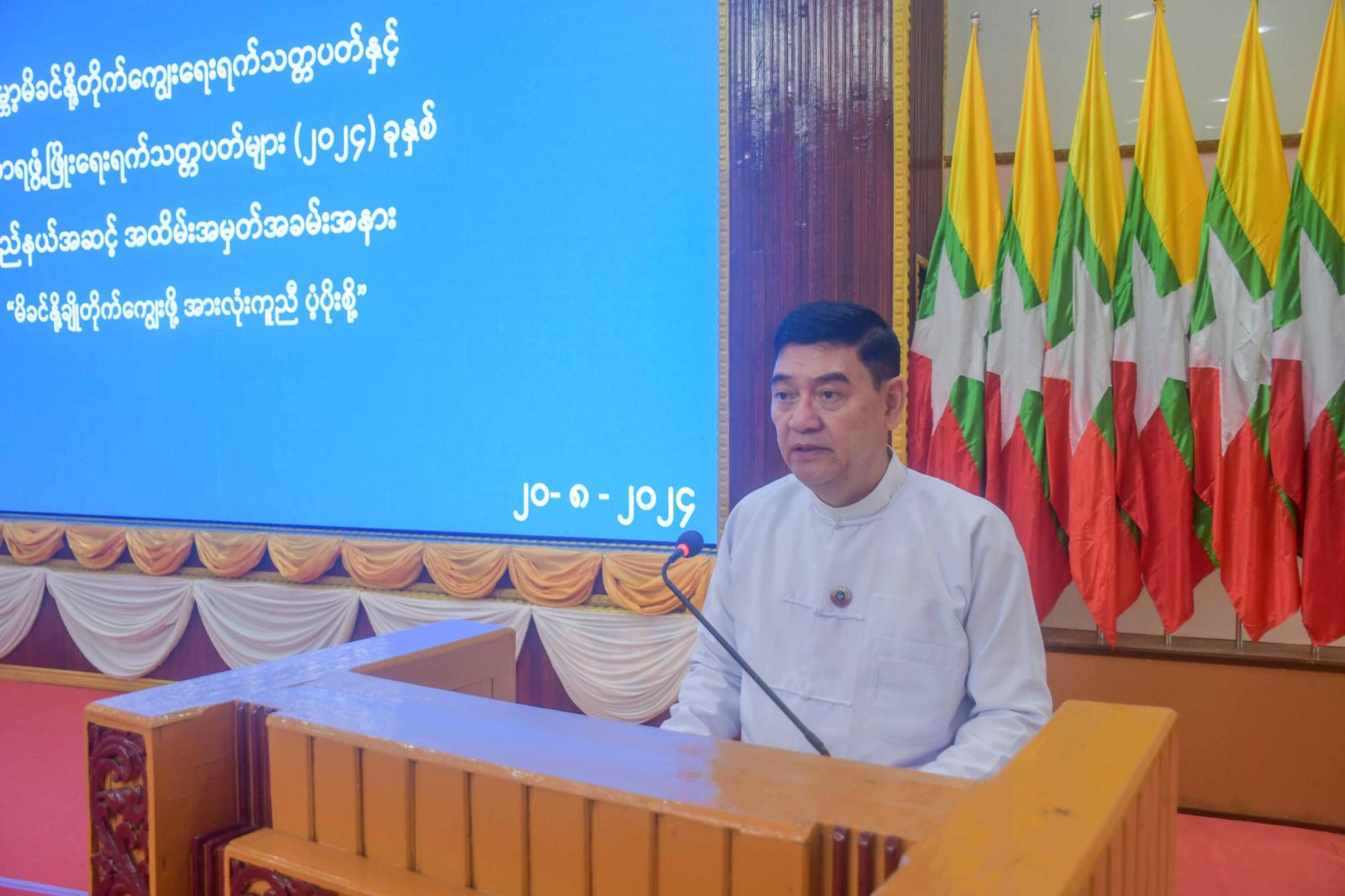 ဦးစွာ ရခိုင်ပြည်နယ်ဝန်ကြီးချုပ် ဦးထိန်လင်းက နိုင်ငံတော်စီမံအုပ်ချုပ်ရေးကောင်စီသည် ပြောင်းလဲလာသည့် နိုင်ငံတော်၏အခြေအနေနှင့်အညီ ရှေ့လုပ်ငန်းစဉ်(၅)ရပ်၊ ဦးတည်ချက်(၉)ရပ်ချမှတ်ပြီး နိုင်ငံတော်ဖွံ့ဖြိုးတိုးတက်ရေးအတွက် ဆောင်ရွက်လျက်ရှိကြောင်း၊ ရခိုင်ပြည်နယ်အစိုးရအဖွဲ့အနေဖြင့်လည်း နိုင်ငံတော်၏မူဝါဒနှင့်အညီ ရခိုင်ပြည်နယ်၏ စီးပွားရေး၊ ပညာရေး၊ လူမှုရေး ဘက်စုံဖွံ့ဖြိုးတိုးတက်ရေးအတွက် အစဉ်အမြဲကြိုးပမ်းဆောင်ရွက်လျက်ရှိပြီး ပြည်သူလူထု၏ကျန်းမာရေးအတွက်ကိုလည်း ဦးစားပေးဆောင်ရွက်လျက်ရှိကြောင်း၊ ကမ္ဘာပေါ်မှာရှိသည့် လူသားအားလုံးသည် မွေးဖွားလာစဉ်ကတည်းက အသက်ဆက်လက်ရှင်သန်ရေး၊ ကိုယ်ခန္ဓာကြီးထွားဖွံ့ဖြိုးရေး၊ ဦးနှောက်အသိဉာဏ်ဖွံ့ဖြိုးတိုးတက်ရေးနှင့် နေ့စဉ်လှုပ်ရှားမှုတို့အတွက် အစာအာဟာရကို မှီဝဲစားသုံးကြရကြောင်း၊ အာဟာရပြည့်ဝခြင်းသည် လူတစ်ဦးတစ်ယောက်၊ မိသားစုတစ်ခုကစ၍ နိုင်ငံတော်၏ တိုးတက်ဖွံ့ဖြိုးမှုအတွက် အရေးပါသည့် အခန်းကဏ္ဍတွင်တည်ရှိကြောင်း၊ ပြည်သူများအာဟာရပြည့်ဝရန်အတွက် အစားအစာလက်လှမ်းမီရရှိရန် လိုအပ်သကဲ့သို့ အစာအာဟာရအကြောင်း သိနားလည်ရန်၊ လိုက်နာကျင့်သုံးရန်၊ ရွေးချယ်ချက်ပြုတ်စားသုံးတတ်ရန်လည်းလိုကြောင်း၊ ကိုယ်ဝန်ဆောင်မိခင်များ၊ နို့တိုက်မိခင်များ၊ မွေးစကလေးများနှင့် အသက်ငါးနှစ်အောက်ကလေးများသည် အာဟာရချို့တဲ့မှုကို ထိခိုက်ခံစားလွယ်သည့် အုပ်စုများဖြစ်ကြောင်း၊ အာဟာရအသိပညာပေးလုပ်ငန်းများဖြစ်သည့် အာဟာရချက်ပြုတ်သရုပ်ပြခြင်း၊ ဖြည့်စွက်စာနှင့်ပတ်သက်သည့် နှစ်သိမ့်ဆွေးနွေးအသိပညာပေးလုပ်ငန်းများဆောင်ရွက်ခြင်း၊ အာဟာရချို့တဲ့သော ကလေးသူငယ်များနှင့် ကိုယ်ဝန်ဆောင်အမျိုးသမီးများအား စောစီးစွာရှာဖွေကုသပေးခြင်း အစရှိသောလုပ်ငန်းများတွင် နှီးနွယ်ဌာနဆိုင်ရာများနှင့်လူမှုအဖွဲ့အစည်းများ၊ ပြည်သူများက ပူးပေါင်းပါဝင်ဆောင်ရွက်ပြီး ပြည်သူများ၏အာဟာရအဆင့်အတန်းကို မြှင့်တင်ရာတွင် ကူညီဆောင်ရွက်ပေးကြရန်လိုကြောင်း၊ နိုင်ငံတော်အနေဖြင့်လည်း နှစ်စဉ်ဩဂုတ်လရောက်တိုင်း ကမ္ဘာ့မိခင်နို့တိုက်ကျွေးရေးရက်သတ္တပတ်နှင့် အာဟာရဖွံ့ဖြိုးရေးရက်သတ္တပတ်များ အဖြစ်သတ်မှတ်ပြီး ဗဟိုအဆင့်၊ တိုင်းအဆင့်၊ မြို့နယ်အဆင့်လှုပ်ရှားမှုများ ဆောင်ရွက်ကာ ပြည်သူလူထုအတွင်း အာဟာရနှင့်ပတ်သက်၍ စိတ်ပါဝင်စားမှုများ ပိုမိုတိုးတက်အောင် လုပ်ဆောင်ပေးနေကြောင်း၊ ထို့ကြောင့်နိုင်ငံတော်အနေဖြင့် အာဟာရချို့တဲ့မှုကာကွယ်ရေးနှင့်ကုသရေးအထောက်အကုပြုဆေးဝါးများ ထောက်ပံ့ခြင်းဖြင့်လည်း အာဟာရနှင့်ပတ်သက်သောကျန်းမာရေးစောင့်ရှောက်မှုအခန်းကဏ္ဍအတွက် ကူညီပေ