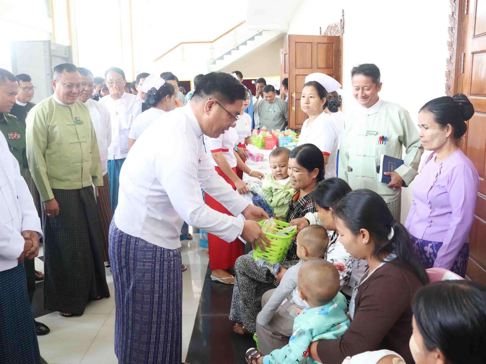 ဆက်လက်၍ ပြည်နယ်ဝန်ကြီးချုပ်နှင့်တာဝန်ရှိသူများသည် ကျန်းမာရေးဦးစီးဌာနမှ ခင်းကျင်းပြသထားသော အစာအာဟာရအုပ်စု(၃)စုနှင့် အာဟာရဖွံ့ဖြိုးရေးလုပ်ငန်းဆောင်ရွက်နေမှု မှတ်တမ်းဓာတ်ပုံများအား လှည့်လည်ကြည့်ရှုခဲ့ကြပြီး ကိုယ်ဝန်ဆောင်မိခင်နှင့် အသက်(၅)နှစ်အောက်ကလေးသူငယ်များအား Vitamin A နှင့် သန့်ချဆေးတိုက်ကျွေးခြင်း၊ ကိုယ်ဝန်ဆောင်မိခင်များအား သံဓာတ်အားဆေးနှင့် Vitamin B1 ဆေးများထောက်ပံ့ပေးခြင်းနှင့် လက်ဆောင်ပစ္စည်းများ ပေးအပ်ခဲ့ကြကြောင်း သိရသည်။