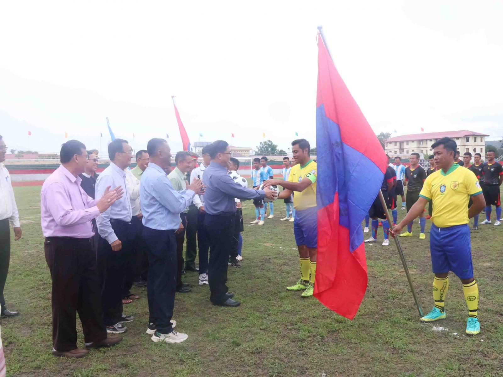 ၎င်းနောက် အားကစားသမားများ ကွင်းအတွင်းမှပြန်လည်ထွက်ခွာပြီး ဖွင့်ပွဲနေ့ ပြိုင်ပွဲအဖြစ် ပြည်နယ်အထွေထွေအုပ်ချုပ်ရေးဦးစီးဌာနဘောလုံးအသင်းနှင့် ခရိုင်အထွေထွေအုပ်ချုပ်ရေးဦးစီးဌာန ဘောလုံးအသင်းတို့ ယှဉ်ပြိုင်ကစားနေမှုများကို ပြည်နယ်ဝန်ကြီးချုပ်နှင့် ဧည့်သည်တော်များက ကြည့်ရှုအားပေးခဲ့ကြသည်။