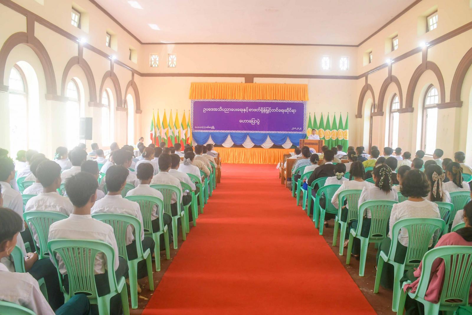ဥပဒေပညာပေးရေးနှင့် စာဖတ်ရှိန်မြှင့်တင်ရေးဟောပြောပွဲကို ယမန်နေ့နေ့လယ်ပိုင်းက စစ်တွေမြို့ အမှတ်(၁)အခြေခံပညာအထက်တန်းကျောင်း၌ ကျင်းပရာ ရခိုင်ပြည်နယ်ဝန်ကြီးချုပ် ဦးထိန်လင်း၊ ပြည်နယ်အစိုးရအဖွဲ့ဝင်များ၊ ဌာနဆိုင်ရာများ၊ လူမှုရေးအဖွဲ့အစည်းများမှ ကိုယ်စားလှယ်များ၊ စာရေးဆရာများ၊ ဆရာ၊ ဆရာမများနှင့် ကျောင်းသား၊ ကျောင်းသူများ တက်ရောက်ကြသည်။