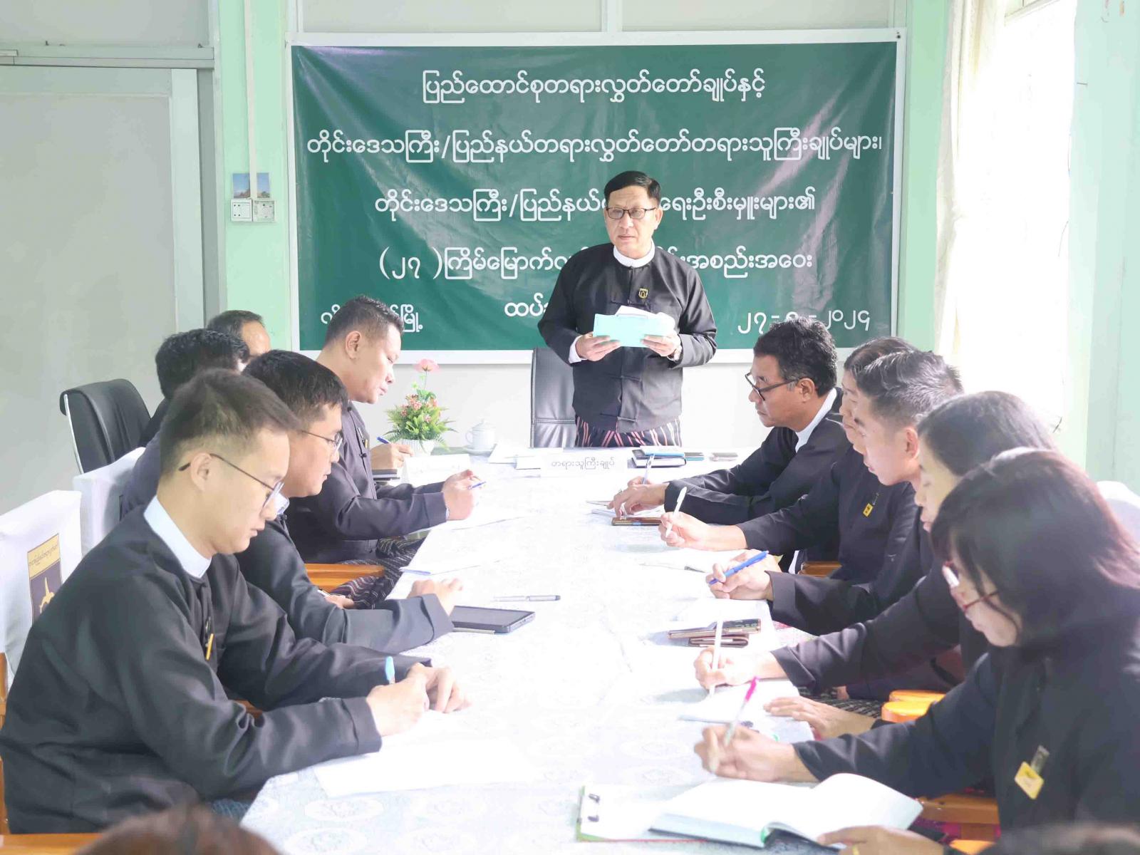 ပြည်ထောင်စုတရားလွှတ်တော်ချုပ်နှင့် တိုင်းဒေသကြီး/ ပြည်နယ်တရားလွှတ်တော် တရားသူကြီးချုပ်များ၊ တိုင်းဒေသကြီး/ပြည်နယ်တရားရေးဦးစီးမှူးများ၏ (၂၇) ကြိမ်မြောက် လုပ်ငန်းညှိနှိုင်းအစည်းအဝေး ထပ်ဆင့်ရှင်းလင်းခြင်းနှင့် တရားစီရင်ရေး၊ စီမံခန့်ခွဲရေးနှင့် စပ်လျဉ်းသည့် လုပ်ငန်းညှိနှိုင်းအစည်းအဝေးကို ယမန်နေ့ မွန်းလွဲပိုင်းက ကယားပြည်နယ် တရားလွှတ်တော်ရုံးတွင် ကျင်းပပြုလုပ်ခဲ့ရာ ကယားပြည်နယ်တရားလွှတ်တော် တရားသူကြီးချုပ် ဦးထွန်းထွန်းဦး၊ ပြည်နယ်တရားရေးဦးစီးမှူး ဦးထွန်းထွန်းအောင်၊ ပြည်နယ်တရားလွှတ်တော် တရားရေးအရာရှိများ၊ ပြည်နယ်အတွင်းရှိ ခရိုင်၊ မြို့နယ်တရားသူကြီးများနှင့် ဝန်ထမ်းများ တက်ရောက်ခဲ့ကြကြောင်း သိရသည်။